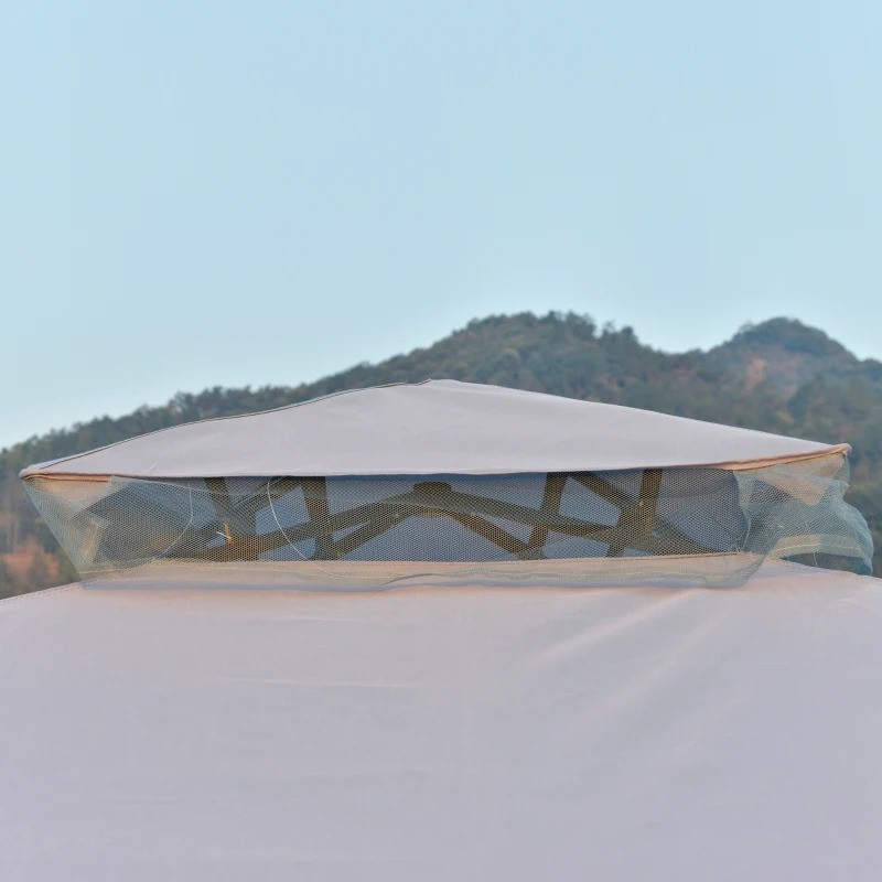 Tento prostorný zahradní altán je nejen elegantním doplňkem do Vašeho venkovního prostoru, ale také poskytne Vaší rodině a hostům stinné místo pro společné chvíle venku. Užijte si Vaše rodinná setkání, grilování, odpolední pikniky, či narozeninové párty bez obav, neboť Vás tento altán s dvojitou střechou a dokonalým odvětráváním spolehlivě ochrání před sluncem i slabým deštěm. Párty stan má pevnou konstrukci a polyesterovou střechu. Včetně moskytiéry.