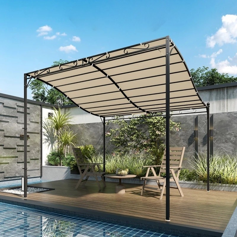 Střecha pergoly by měla být jednoduchá. Prověšená, vodou naplněná střecha narušuje terasu a ohrožuje rám. Náhradní střecha pro pergoly se hodí pro rámy 3x3 m. Zajišťují ji suché zipy, 16 odtokových otvorů odvádí déšť. Střecha tak zůstává napnutá, takže si můžete v klidu užívat zahradu.
