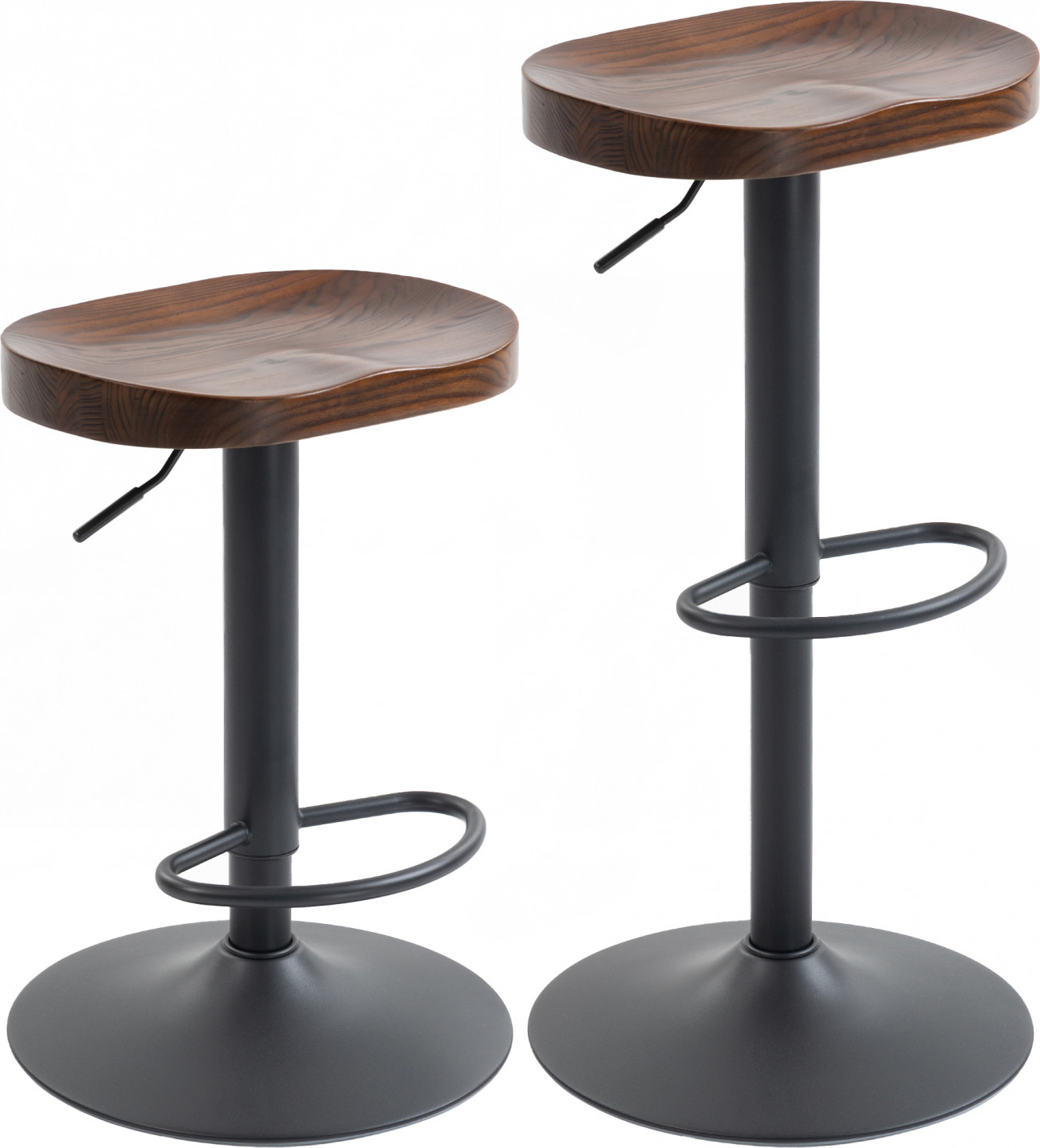 2 výškově nastavitelné a otočné barové židle se sedákem z jilmového dřeva | tmavě hnědé + černé