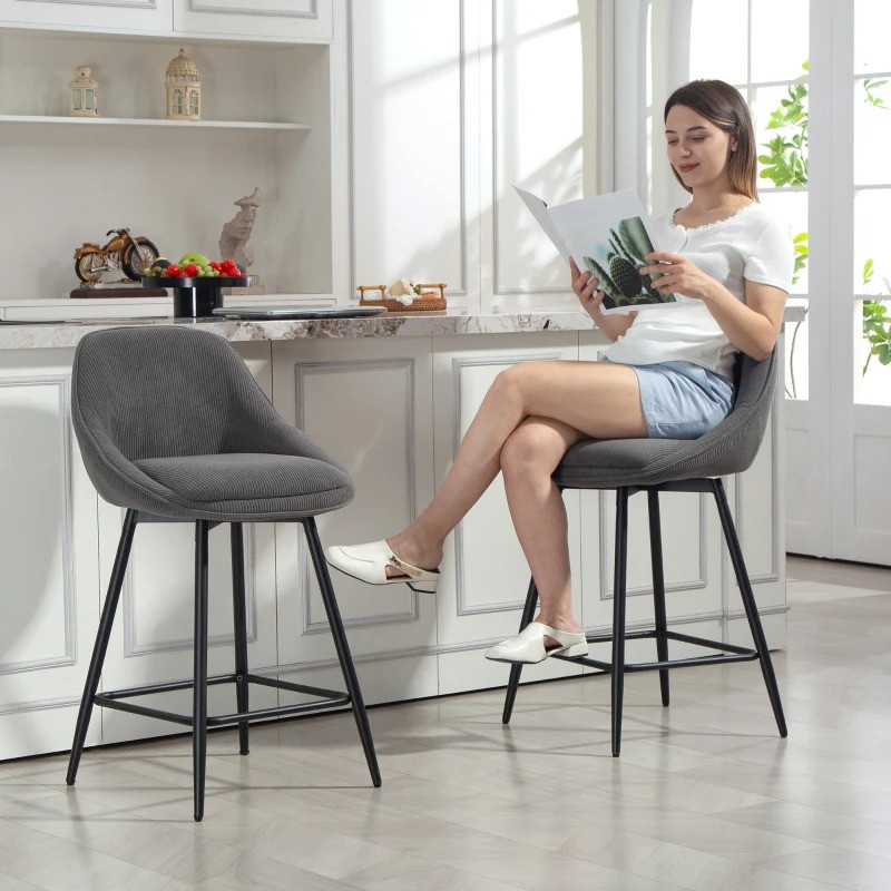 Obětujete pohodlí kvůli stylu nebo stabilitu kvůli designu? Nepohodlné, viklající se barové židle vám mohou zkazit radost ze setkání na kuchyňském ostrově. Barové stoličky kombinují elegantní manšestr s luxusním čalouněním. Stojí na robustních ocelových nohách a nastavitelných podložkách, poskytují bezpečné a útulné sezení a promění váš bar v oblíbené místo setkávání.