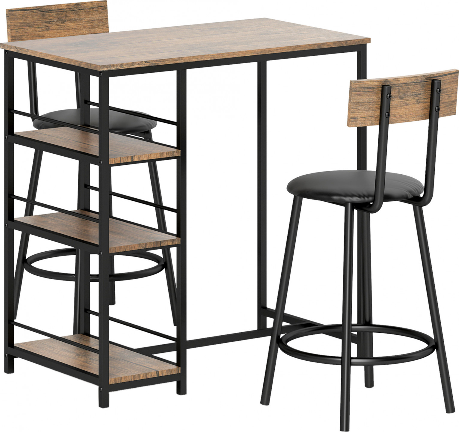 Přestavte si kuchyň pomocí 3dílné jídelní soupravy. Barový stůl s integrovanými policemi nabízí další úložný prostor a velkou desku stolu. Pod stůl se pohodlně vejdou dvě pohodlné barové židle s pěnovým polstrováním a snadno udržovatelným povrchem - ideální do malých útulných výklenků. Posaďte se stylově a vychutnejte si snídani, lehký oběd nebo drink s návštěvou.