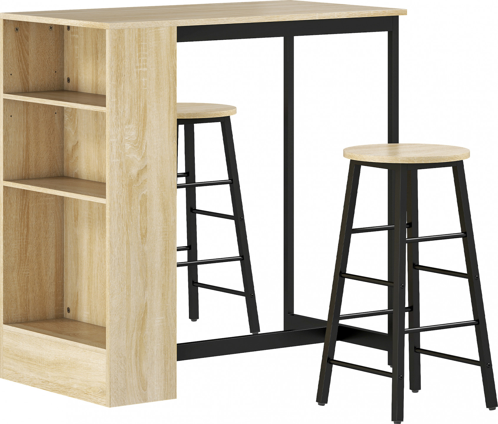 • Třídílná sada barového stolu obsahuje barový stůl a dvě odpovídající stoličky.