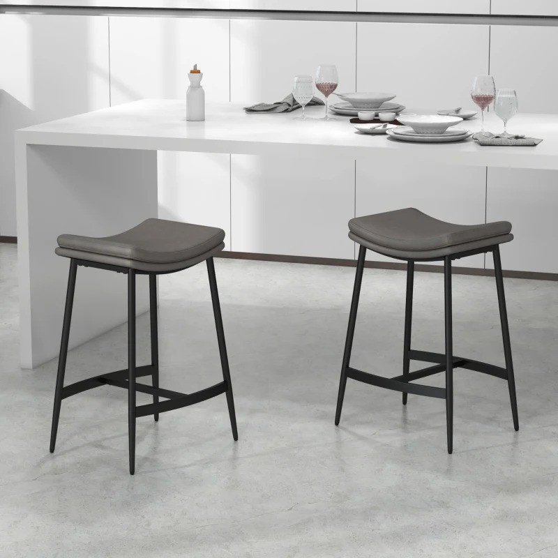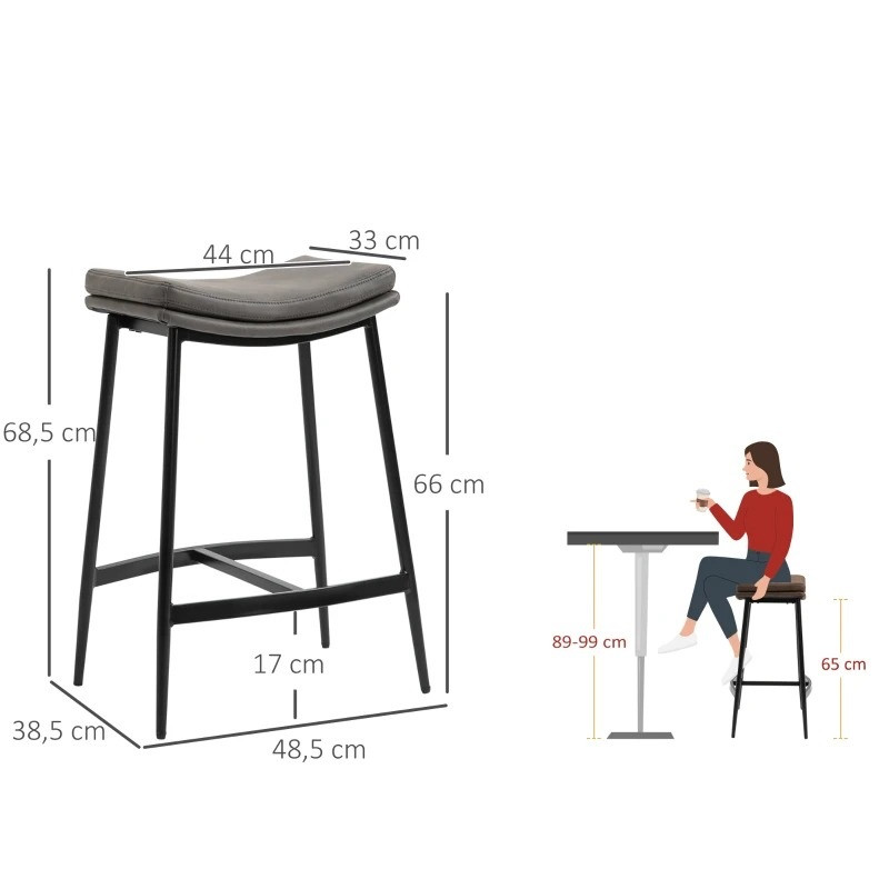 Na těchto barových židlích si můžete v jídelně na chvíli odpočinout. Jejich robustní ocelový rám poskytuje vynikající oporu a čalouněné sedáky zvyšují pohodlí při sezení. Tmavé barevné tóny vytvářejí univerzální industriální design - ideální pro širokou škálu interiérů. Tyto barové židle k barovému pultu mají také opěrku na nohy.