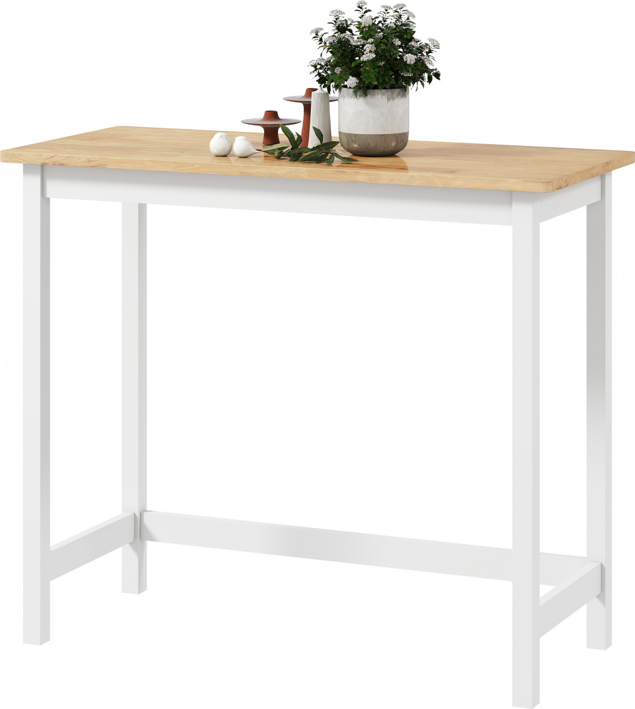Obnovte své stolování se stylovým stolem, který kombinuje elegantní dubovou desku se svěžím bílým rámem. Kompaktní design stolu umožňuje snadné usazení dvou osob a ladí s venkovskými i moderními interiéry. Kuchyňský stůl je vyroben z robustního kaučukového dřeva a má uzavřený povrch. Ideální do menších prostor!