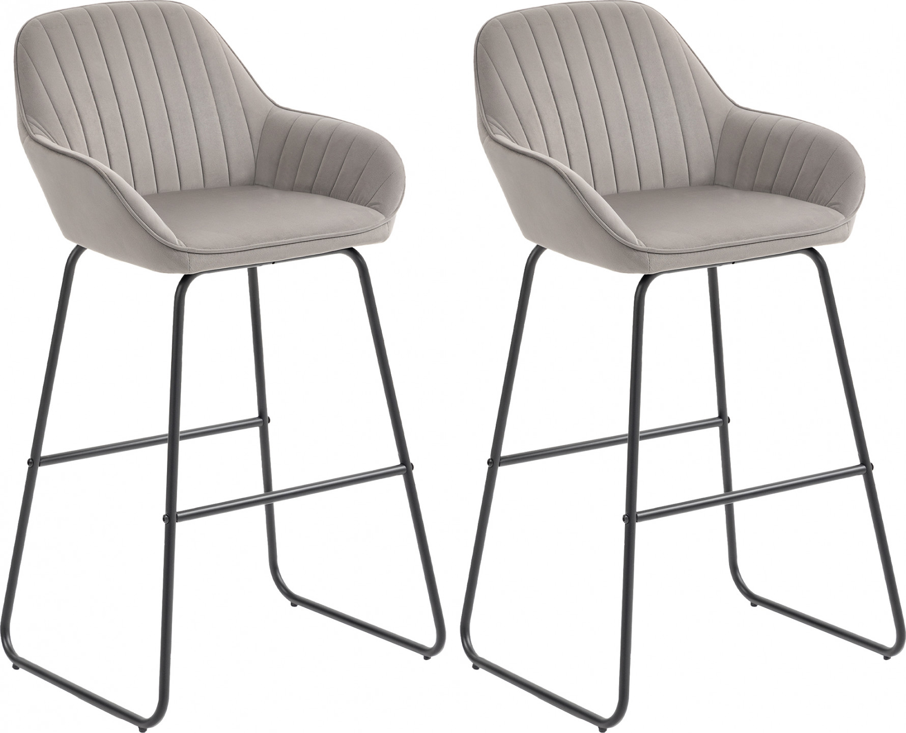 Tato sada 2 barových židlí se sametově měkkým čalouněním a stylovým prošitím nabízí ideální posezení za všech okolností. Hustě polstrované područky a sedák z pěny vysoké hustoty se zabudovanou opěrkou na nohy barové židle zajišťují optimální pohodlí. Tato sada 2 barových židlí dodá eleganci a útulnost každé místnosti.