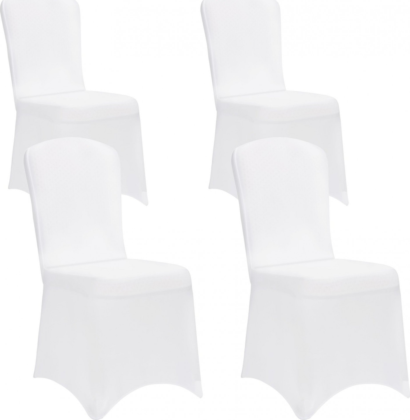 Elegantní sada 4 bílých potahů na židle dodá vašemu interiéru svěží a sjednocený vzhled. Skvěle se hodí pro slavnostní příležitosti, svatby, oslavy, ale i pro každodenní použití v jídelně. Potahy jsou pružné, snadno se nasazují a díky elastickému materiálu se přizpůsobí většině běžných typů židlí.