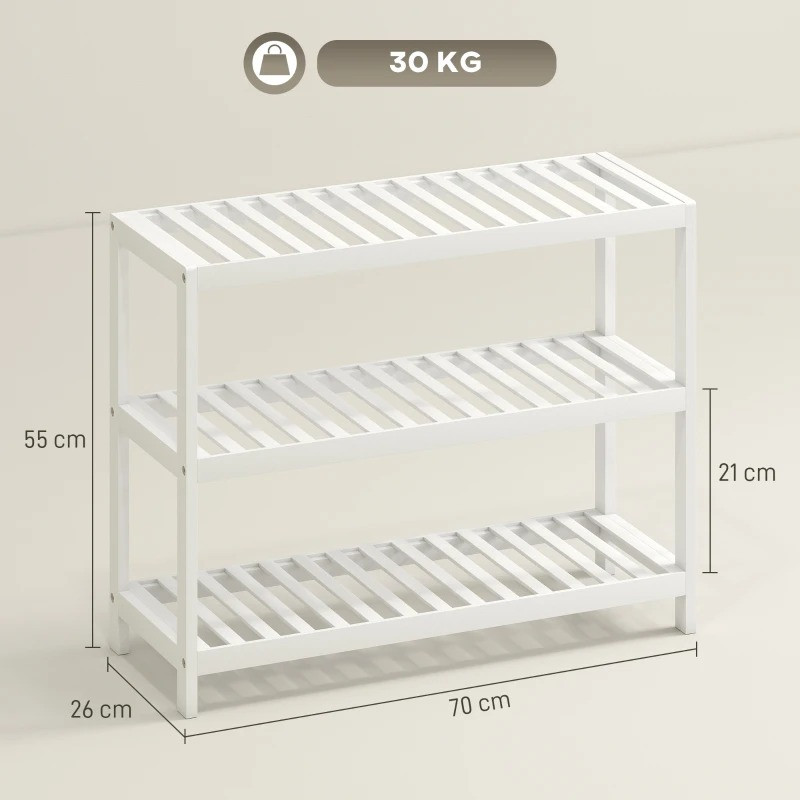 Bambusový botník se 3 úrovněmi | bílý