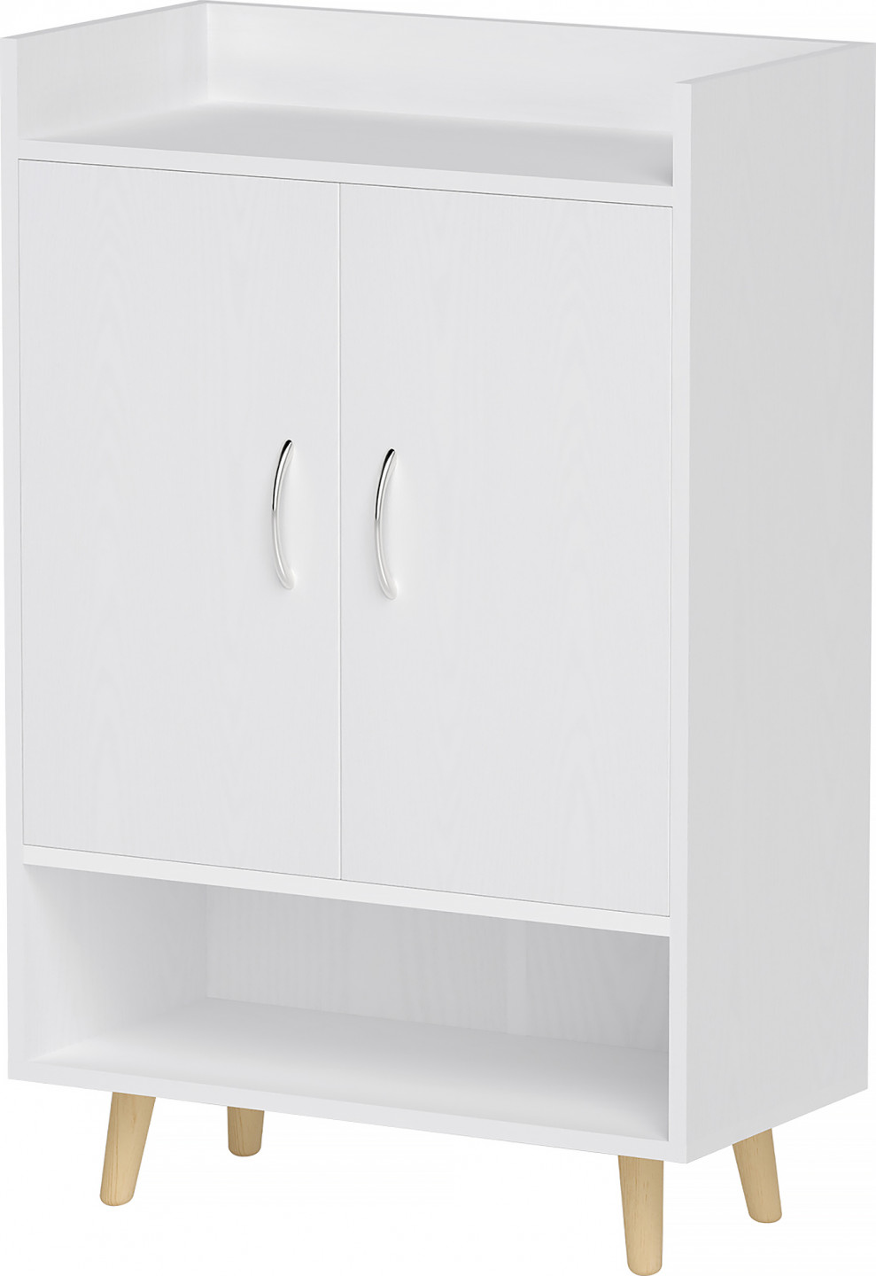 Díky svému jednoduchému, elegantnímu a modernímu vzhledu je botník vhodný do různých interiérů. Díky skryté skříňce a dvěma otevřeným policím pro uložení bot a doplňků je botník praktickým řešením do menších vstupních prostor nebo předsíní.