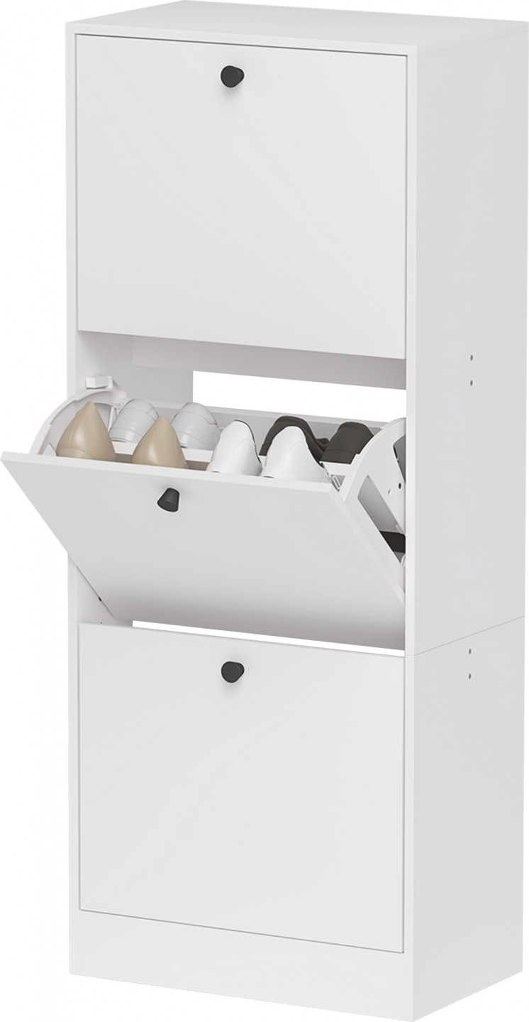 Uložte své boty stylově a přehledně do botníku. Elegantní design botníku s černými kulatými úchyty a třemi přihrádkami nabízí prostor až pro 12 párů bot. Je ideální do stísněných prostor a díky nastavitelným policím si ji můžete snadno přizpůsobit. Ideální volba pro elegantní domov!