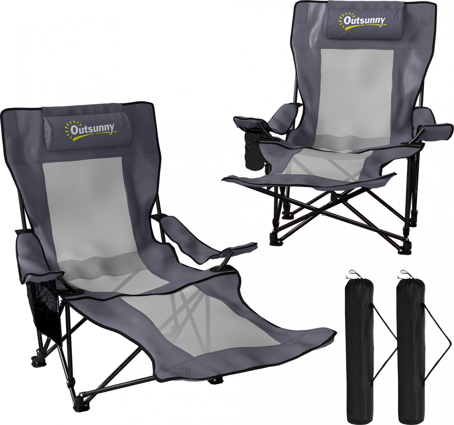 Sada dvou skládacích kempingových židlí nabízí venkovní pohodlí. Díky čtyřem nastavitelným polohám od sezení po sklápění a prodyšnému síťovanému sedáku můžete zůstat v pohodě a v klidu. Ideální pro společné chvíle odpočinku s individuálním pohodlím na tomto skládacím kempingovém křesle.