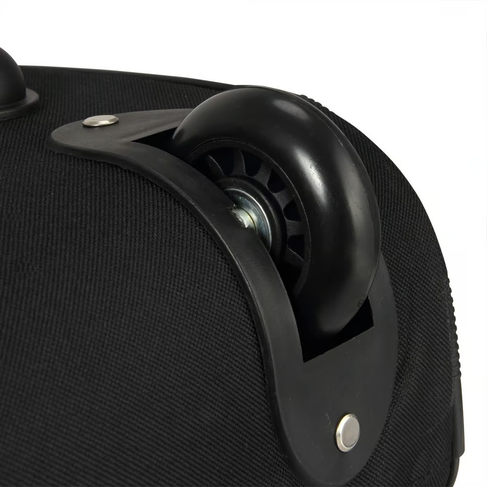 Vaše zavazadla budou v této prostorné cestovní tašce na kolečkách perfektně uložena. Ať už ji používáte jako cestovní tašku (na letadlo, do auta, na loď nebo do vlaku), nebo jako sportovní tašku, nabízí pohodlnou přepravu díky výsuvné teleskopické rukojeti a dvěma hladce se pohybujícím kolečkům (funkce vozíku). Visací zámek integrovaný do tašky chrání vaše zavazadla před nechtěnou krádeží. Pokud teleskopickou rukojeť nepotřebujete, lze ji jednoduše skrýt za krytem. Tři vnější kapsy na zip jsou také praktické pro menší předměty, ke kterým potřebujete rychlý přístup. S objemem 160 litrů nabízí tato cestovní taška dostatek prostoru pro krátké i dlouhé cesty. Díky odolnému materiálu a robustním nohám si ji budete užívat po dlouhou dobu.