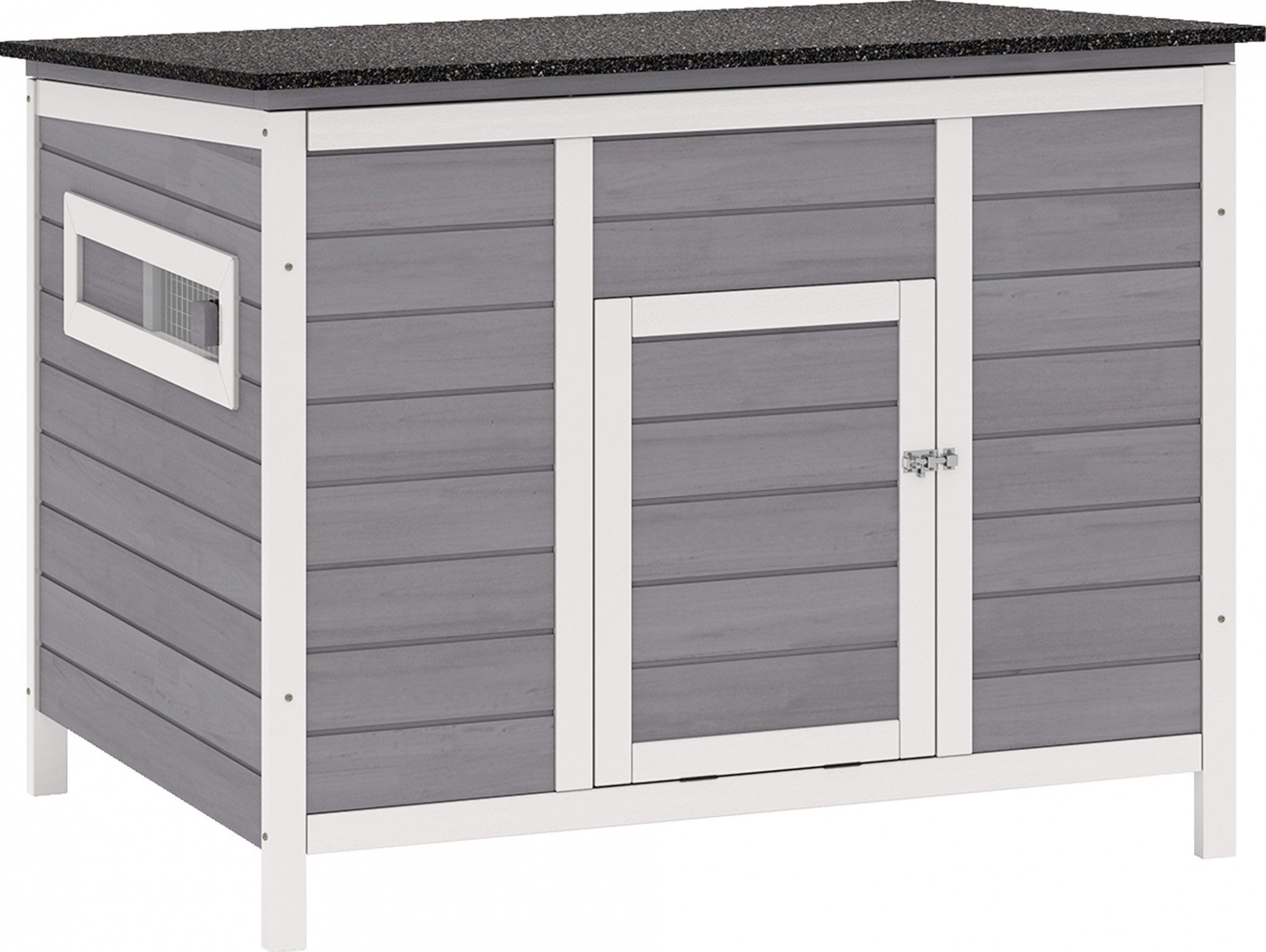 - Robustní dřevěný rám s asfaltovou střechou poskytuje ochranu za každého počasí
