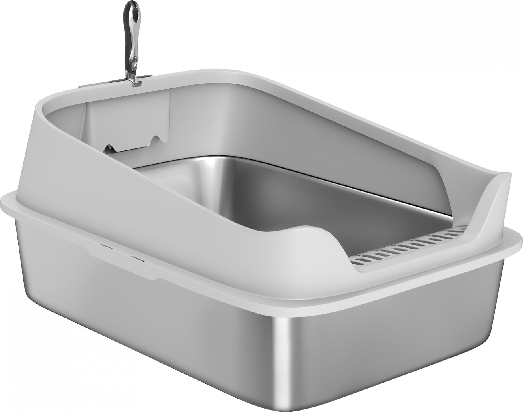Pokud hledáte praktickou, snadno čistitelnou misku s dostatečným prostorem pro velké kočky, tento model by pro vás mohl být tím pravým. Provedení z nerezové oceli je ideální pro udržení čistoty a svěžesti prostředí. Sítko u vchodu a vysoké okraje navíc pomáhají zabránit znečištění podlahy. Pohodlná a funkční volba pro vás i vaši kočku.