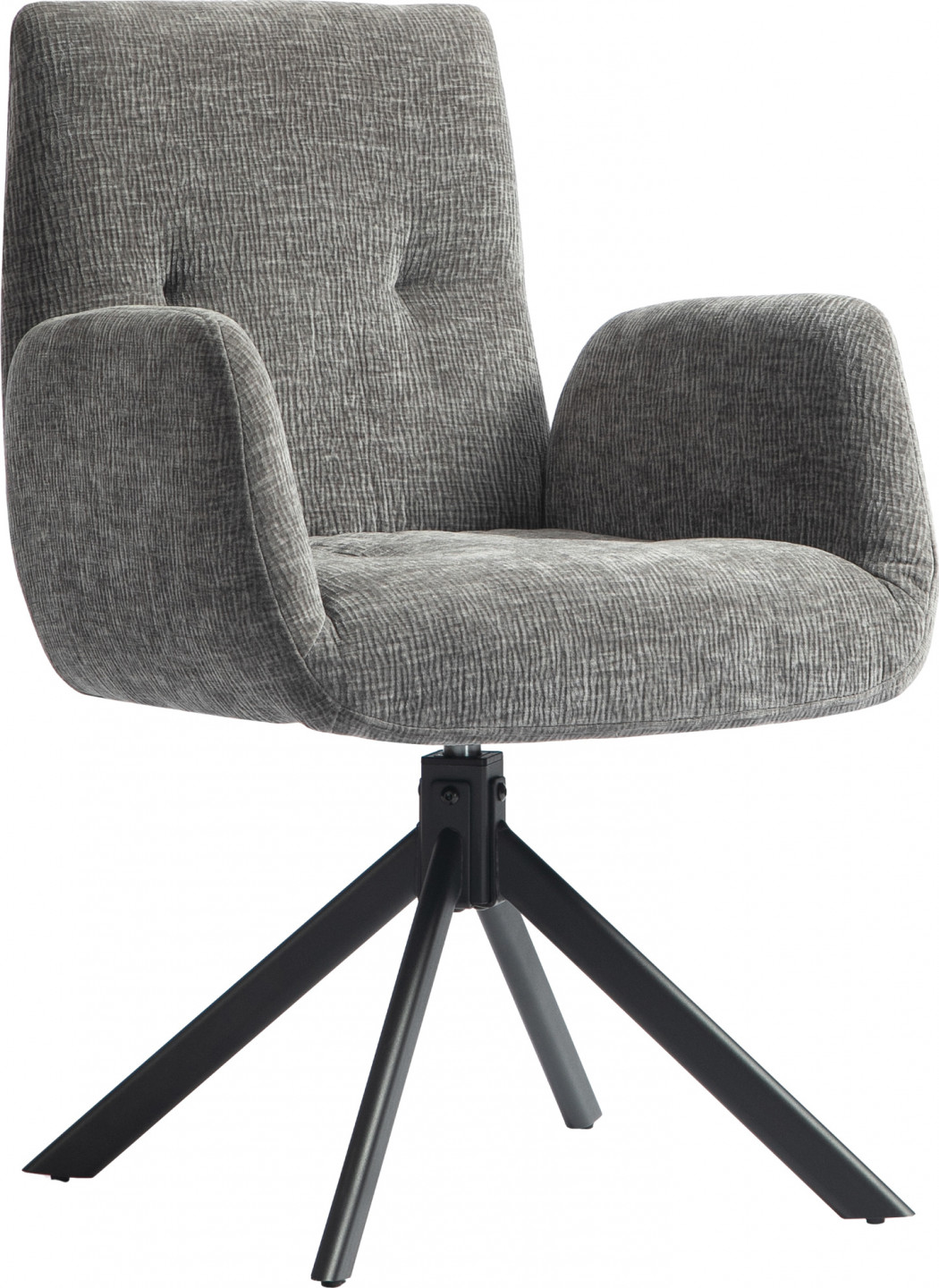 Čalouněné otočné lounge křeslo v elegantní tmavě šedé barvě nabízí maximální komfort a stylový design. Měkké polstrování a ergonomický tvar zajišťují pohodlné posezení, zatímco otočný mechanismus umožňuje snadný pohyb a flexibilitu. Robustní konstrukce a kvalitní materiály garantují dlouhou životnost. Skvělý doplněk do obývacího pokoje, pracovny nebo relaxačního koutku, který vnese do prostoru nádech luxusu a pohodlí.