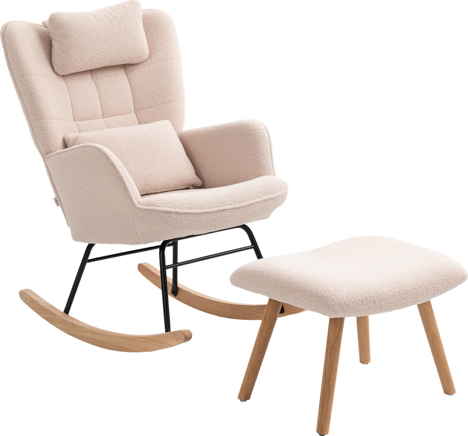 Užijte si houpací křeslo, které je dokonalou symbiózou stylu a pohodlí. Umožňuje jemné houpání v rozmezí 95-115°, odpružené plstěnými podložkami, které chrání vaše podlahy. Houpací křeslo s ergonomickým designem, měkkou hlavovou a nožní částí z prodyšného rouna, podepřené robustním ocelovým rámem a elegantními nohami z bukového dřeva, ideální pro chvíle odpočinku.