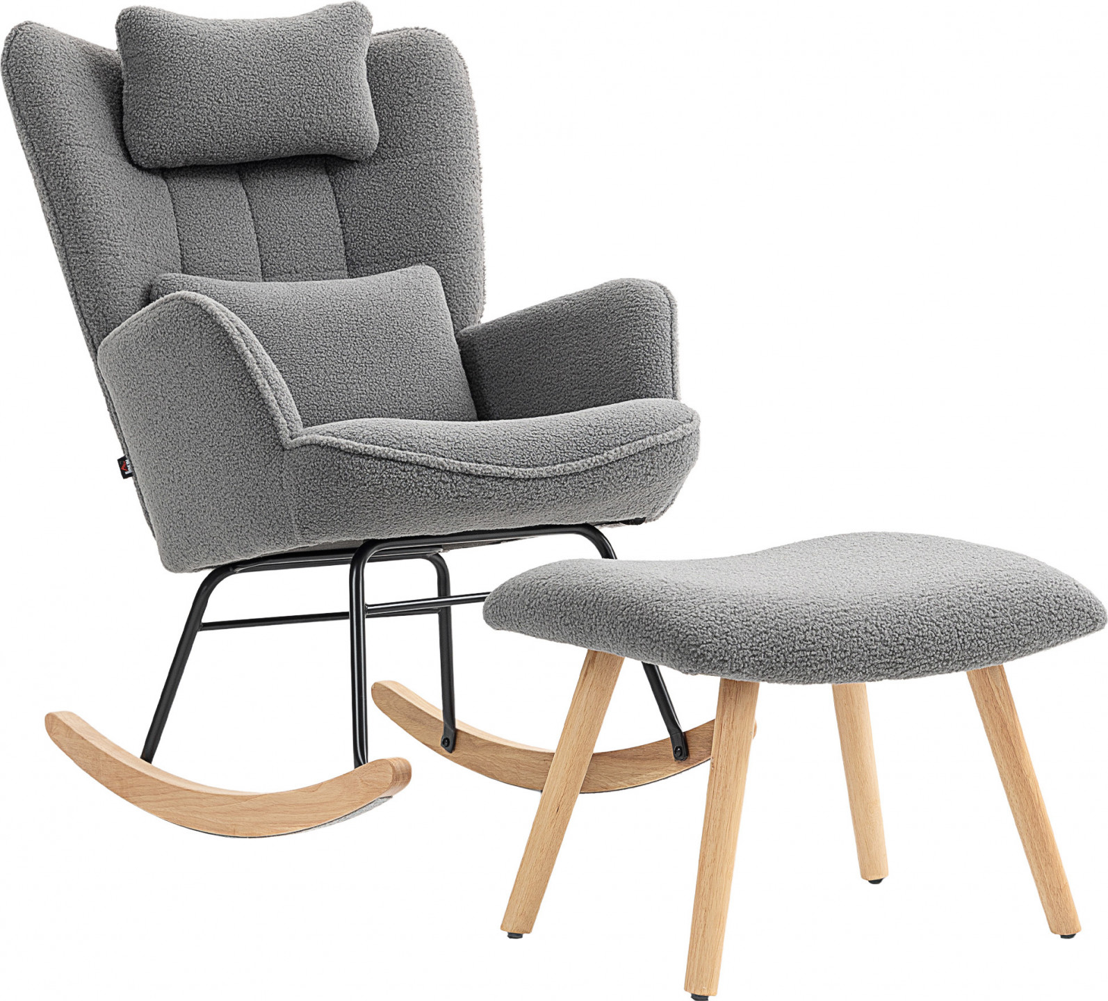 Užijte si houpací křeslo, které je dokonalou symbiózou stylu a pohodlí. Umožňuje jemné houpání v rozmezí 95-115°, odpružené plstěnými podložkami, které chrání vaše podlahy. Houpací křeslo s ergonomickým designem, měkkou hlavovou a nožní částí z prodyšného rouna, podepřené robustním ocelovým rámem a elegantními nohami z bukového dřeva, ideální pro chvíle odpočinku.