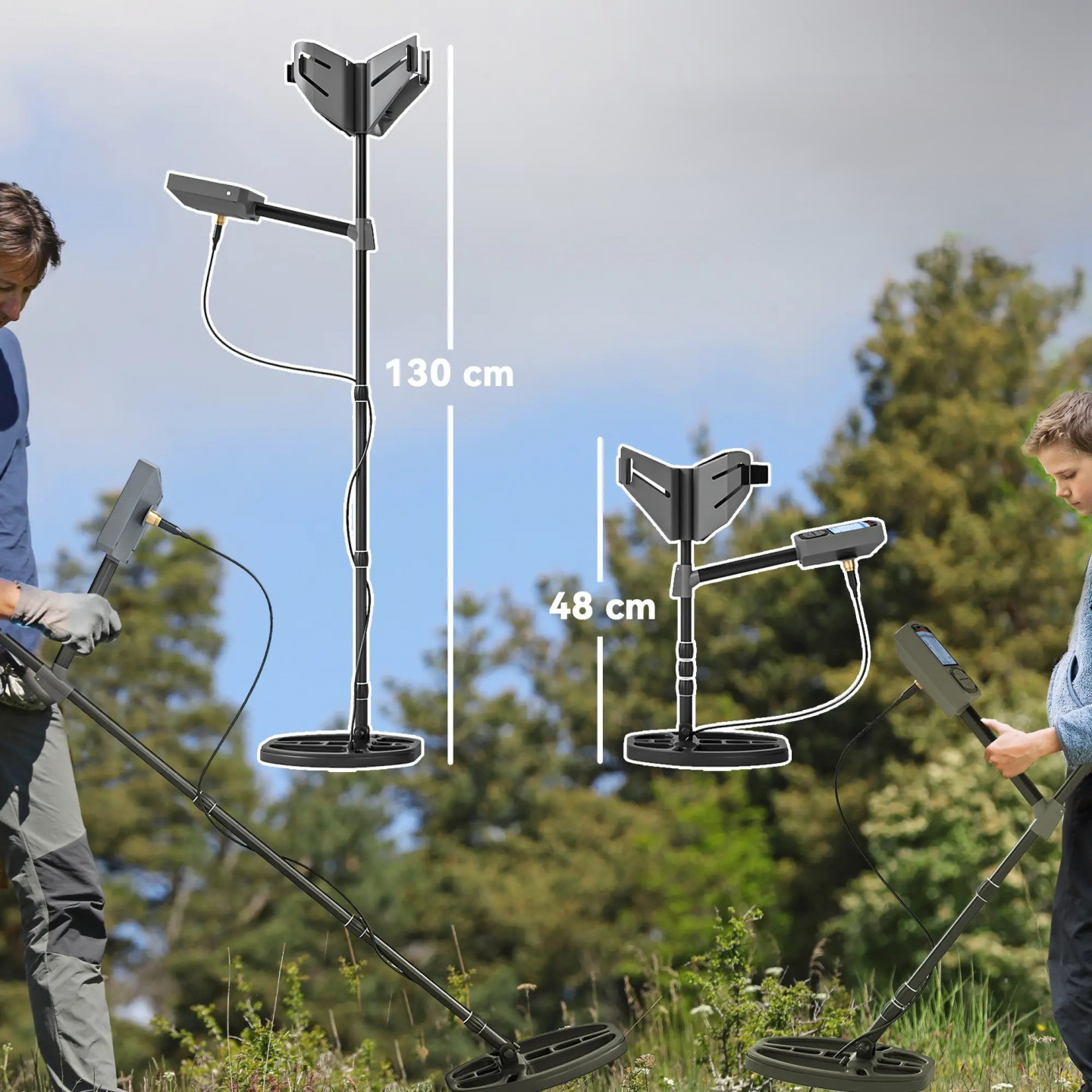 - Nastavitelná teleskopická tyč detektoru kovů se přizpůsobí vašim mírám.