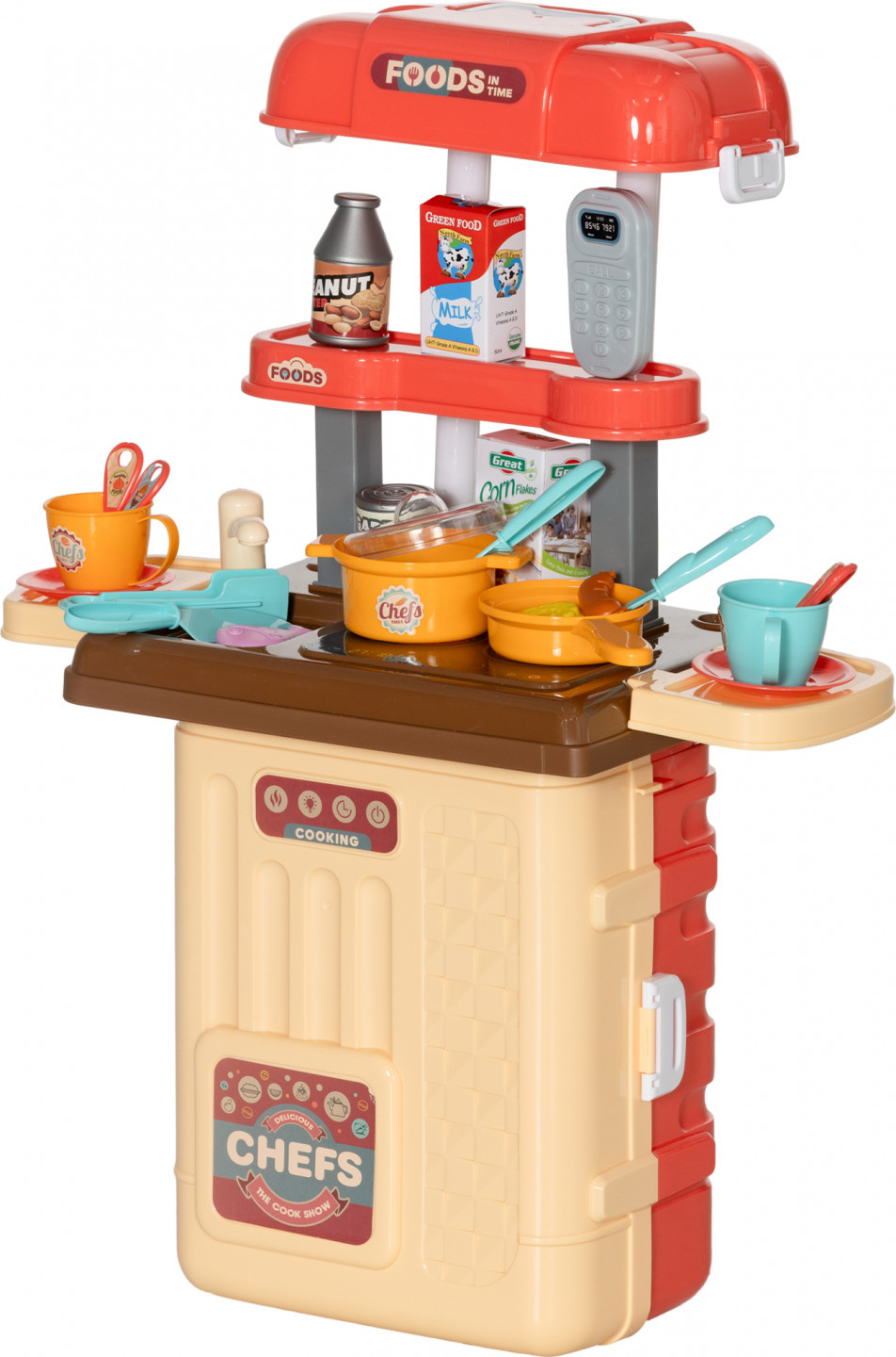 Proměňte každý pokoj v kreativní kuchyňský koutek s 36dílnou sadou na hraní! Tuto dětskou kuchyňskou soupravu 3 v 1 lze použít jako příborník, jídelní stůl a také jako vozík a je ideální pro kreativní a všestrannou hru. Díky skládací konstrukci se snadno přenáší, takže se malí kuchaři mohou bavit kdekoli.