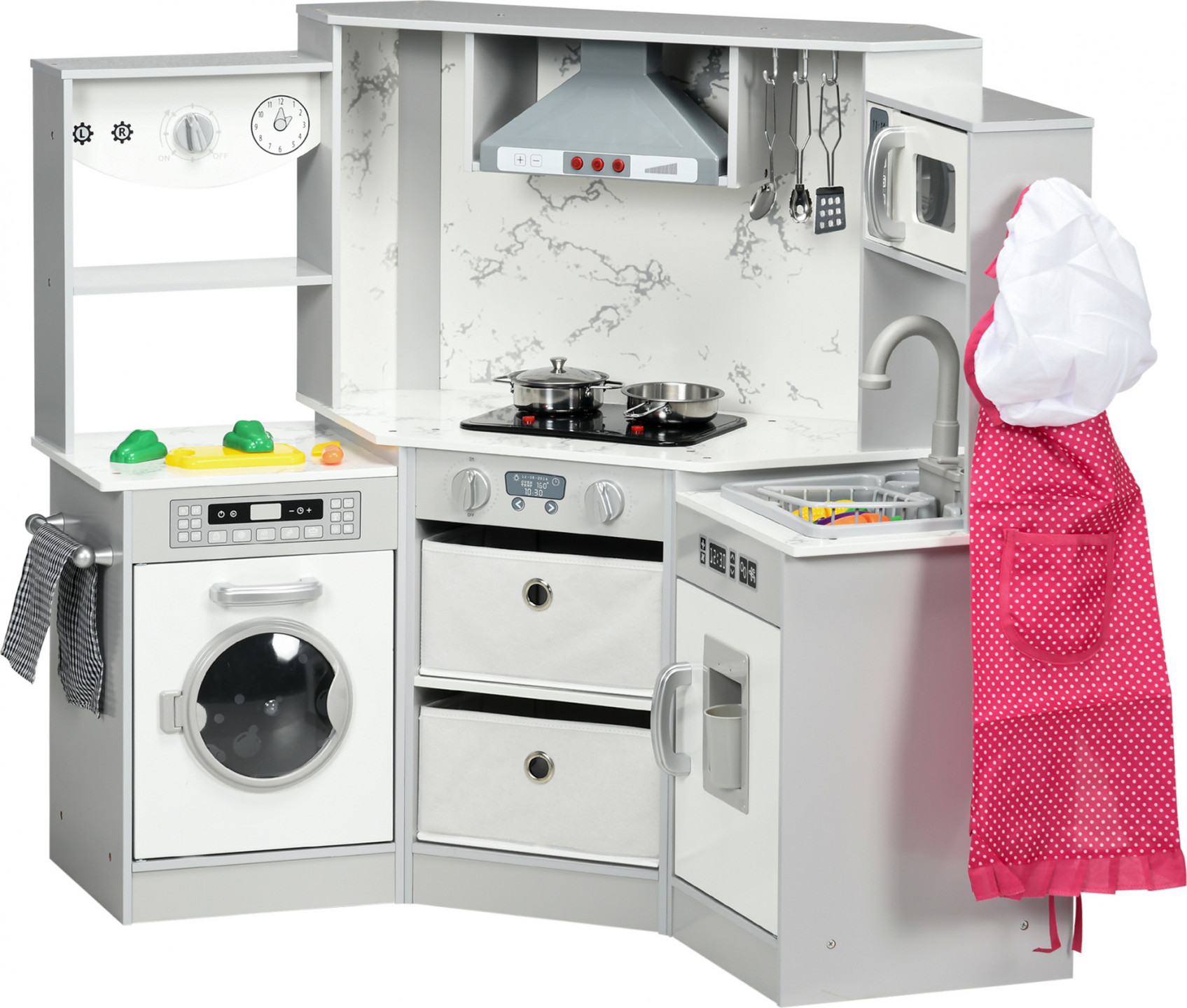 Dřevěná dětská kuchyňka se spotřebiči | šedá + bílá