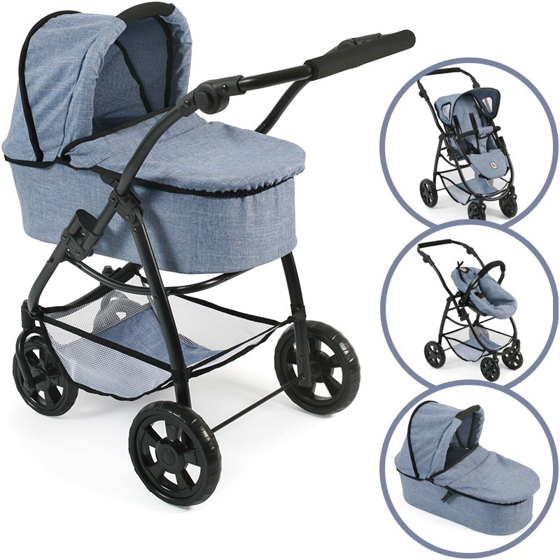Kočárek pro panenku Bayer Chic 2000 Emotion 3v1 s autosedačkou 63750 Jeans Blue