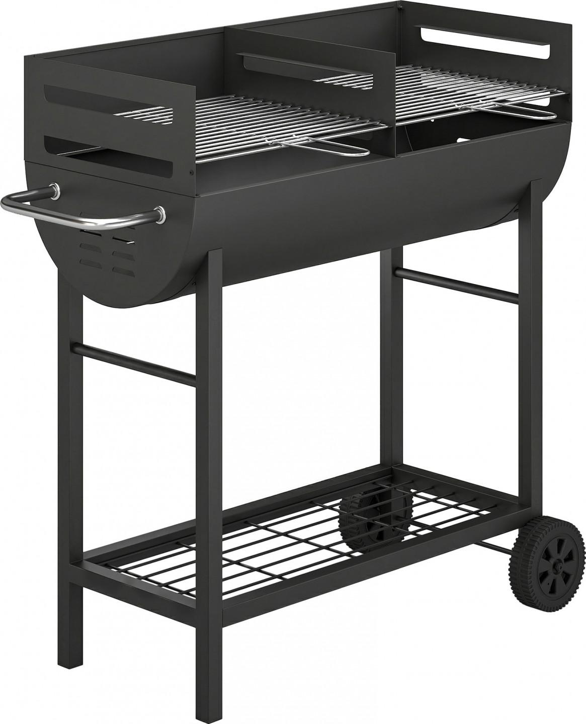 Grilovací vozík na dřevěné uhlí se 2 grilovacími zónami | černý