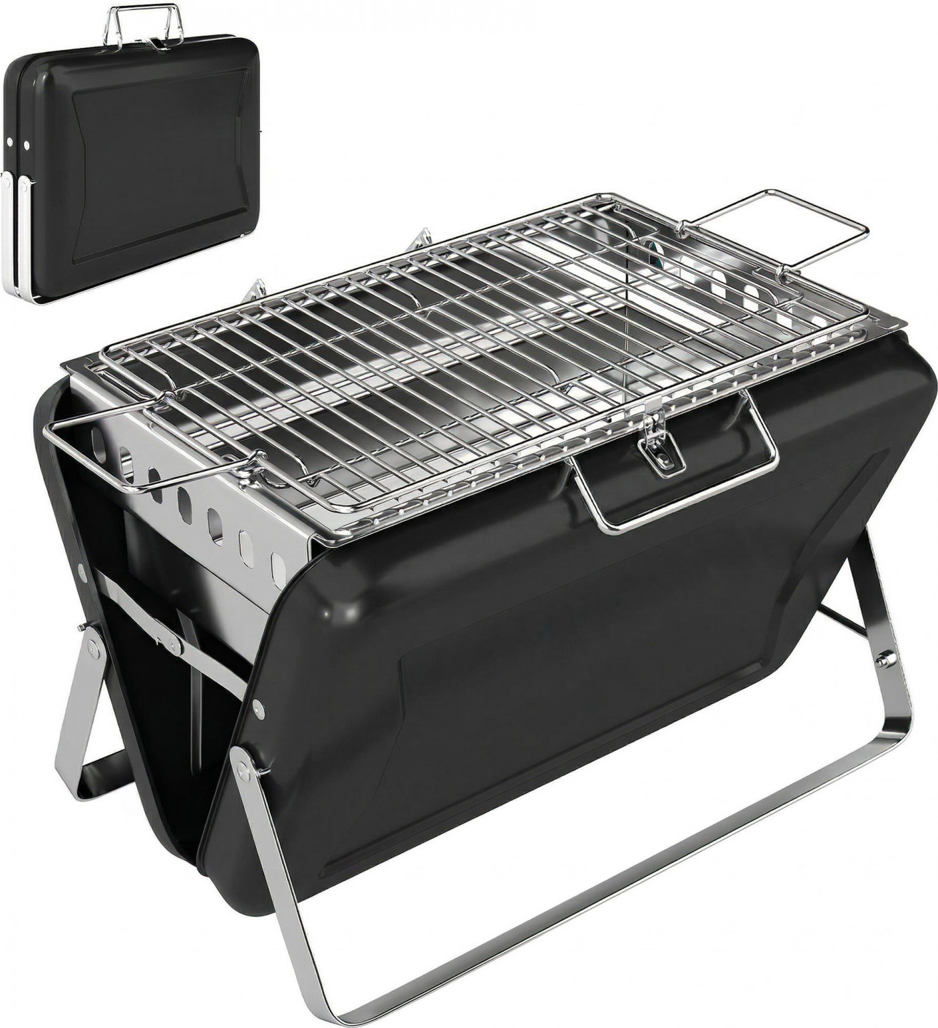 - Skládá se do kufříku o rozměrech 40 × 28 × 9 cm a je vybaven rukojetí pro snadnou přepravu tohoto grilu na dřevěné uhlí.
