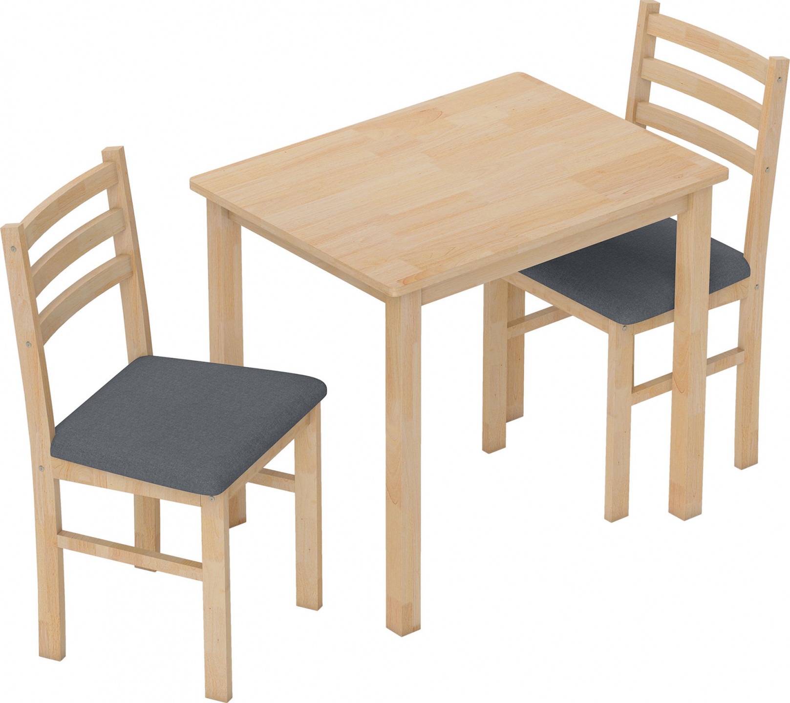 - Součástí je kuchyňský stůl a dvě židle, ideální do malých bytů nebo snídaňových koutů.