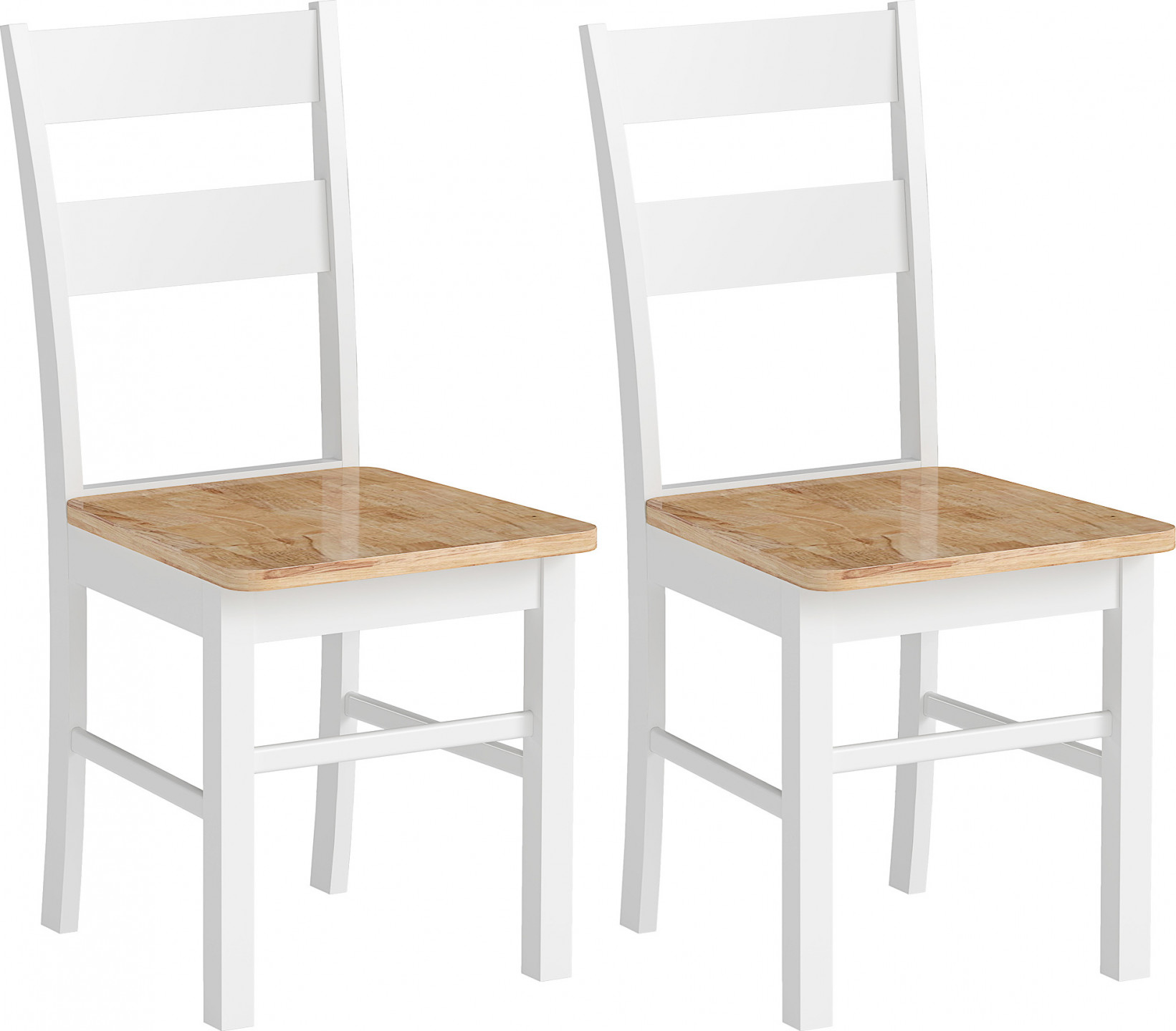 Obohaťte svou jídelnu nebo pracoviště sadou dvou kuchyňských židlí z robustního kaučukového dřeva. Každá židle bezpečně unese až 120 kg. Jejich jednoduchý design v dubové a bílé barvě se skvěle hodí do moderních i venkovských interiérů. Robustní dřevěné nohy a ergonomicky tvarované opěradlo zajišťují vynikající pohodlí při sezení. Jídelní židle se snadno sestavují, takže je můžete rychle používat.