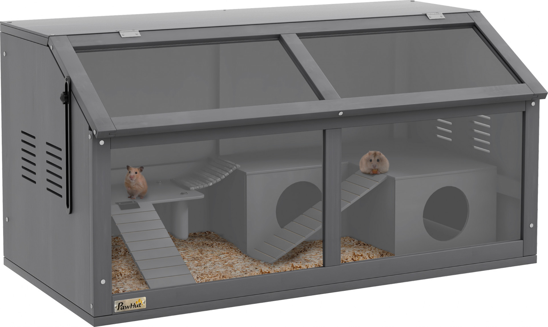 - Přední panel klece pro trpasličí křečky je vyroben z průhledného materiálu pro snadný přehled o životě vašeho zvířete