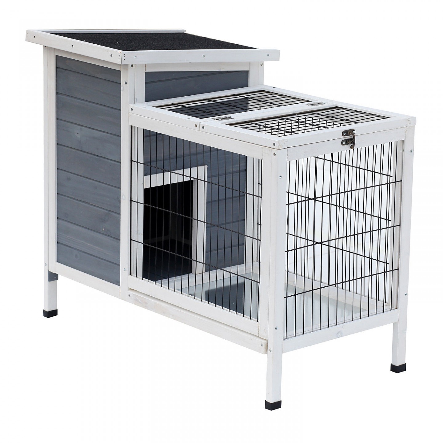 Tato dřevěná králíkárna je ideální pro králíka, zakrslého králíka, morče či jiné malé hlodavce. Je vyrobena z odolného jedlového dřeva, který je opatřen vodoodpudivou úpravou. Kovové mřížky jsou stabilní a chrání vaše zvířata. Asfaltová stříška je odolná vůči povětrnostním vlivům. Králíkárna je vhodná nejen pro vnitřní, ale i pro venkovní účely. Součástí králíkárny pro králíky je výsuvný šuplík pro snadnou údržbu.