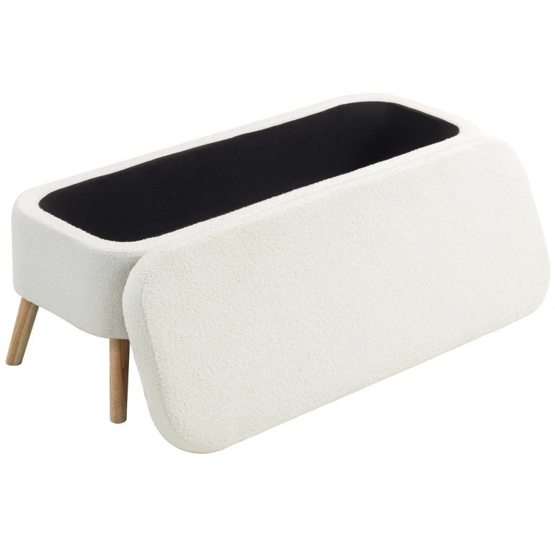 Čalouněná lavice s dřevěnými nohami | krémově bílá