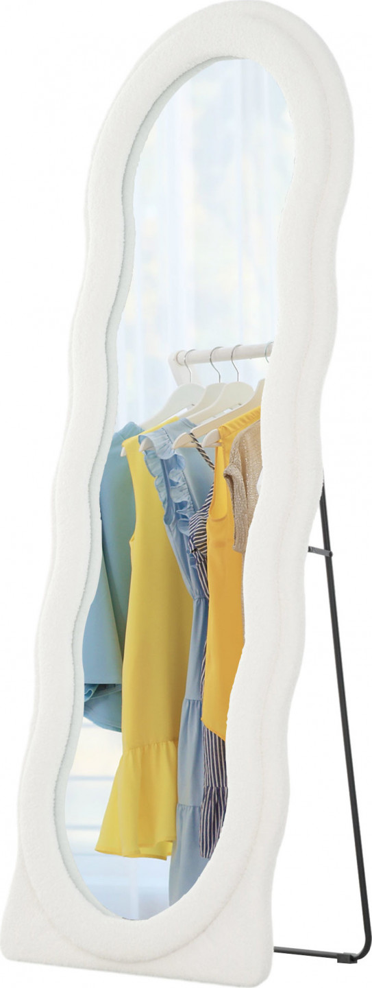 Objevte naše stylové nástěnné zrcadlo po celé délce, obklopené dvojitým zvlněným rámem a měkkým plyšovým rounem. Velkorysé zrcadlo po celé délce o rozměrech 160 x 60 cm umožňuje kompletní pohled, takže se můžete dokonale prezentovat od hlavy až k patě. Sklo s vysokým rozlišením a nerozbitným zadním panelem zaručuje jasný výhled a bezpečnost. Toto zrcadlo do předsíně, které je ideální do ložnic nebo šaten, lze zavěsit na zeď, opřít o něj nebo použít jako volně stojící.