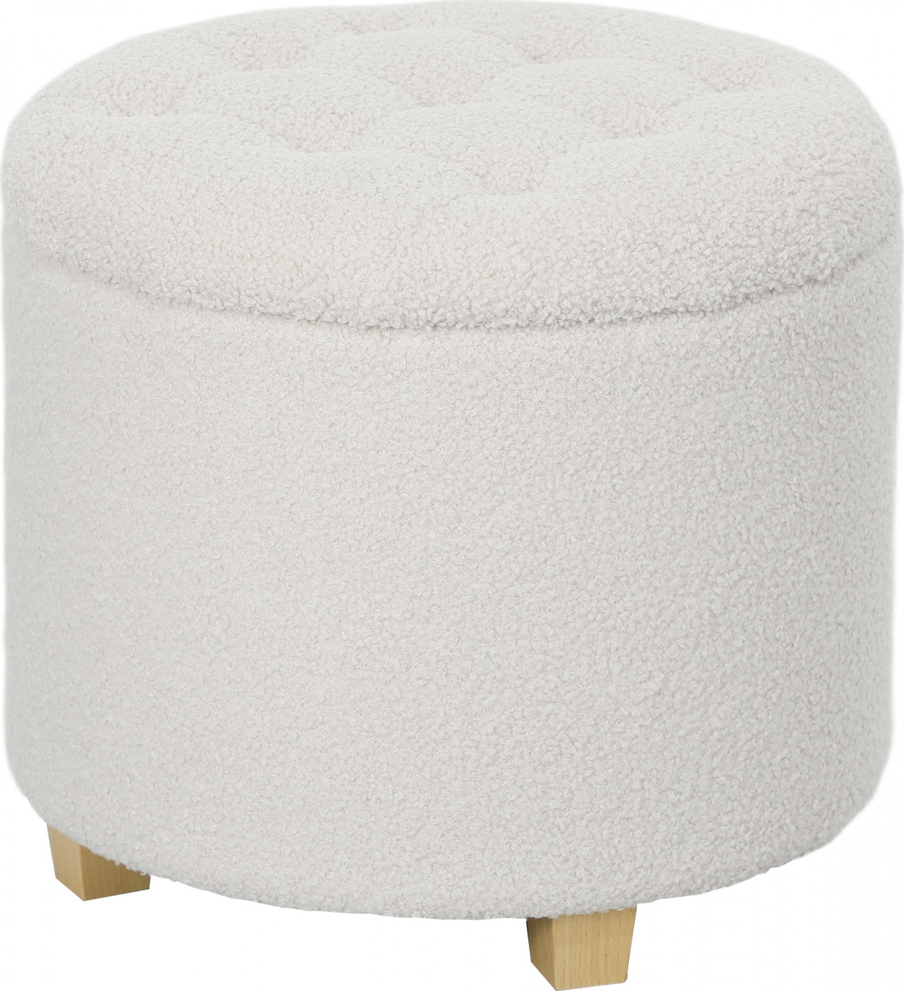 Zažijte multifunkční eleganci s otomanem s úložným prostorem. Pod knoflíky čalouněným povrchem otomanu se skrývá přihrádka o objemu 40,5 litru, která je ideální na deky, knihy a další předměty. Potažený měkkou prodyšnou látkou a polstrovaný silnou pěnou slouží otoman jako pohodlné sedátko nebo opěrka nohou. Tento stylový kus nábytku s nohami z borovicového dřeva vnese všestrannou útulnost do každé místnosti.