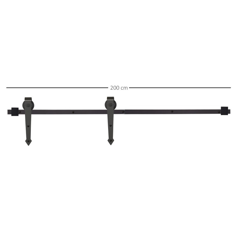 Pro zákazníky, kteří chtějí větší délku, jsme rozšířili naši oblíbenou sadu kování Arrow pro stodolové dveře na 200 cm. Tento styl dodá vašemu domovu rustikální a moderní nádech. Aktualizujte svůj interiér pomocí této sady, aniž byste museli provádět velké přestavby. Nenápadná tečka na závěsu stodolových dveří obohacuje design o rustikálně-moderní akcent.