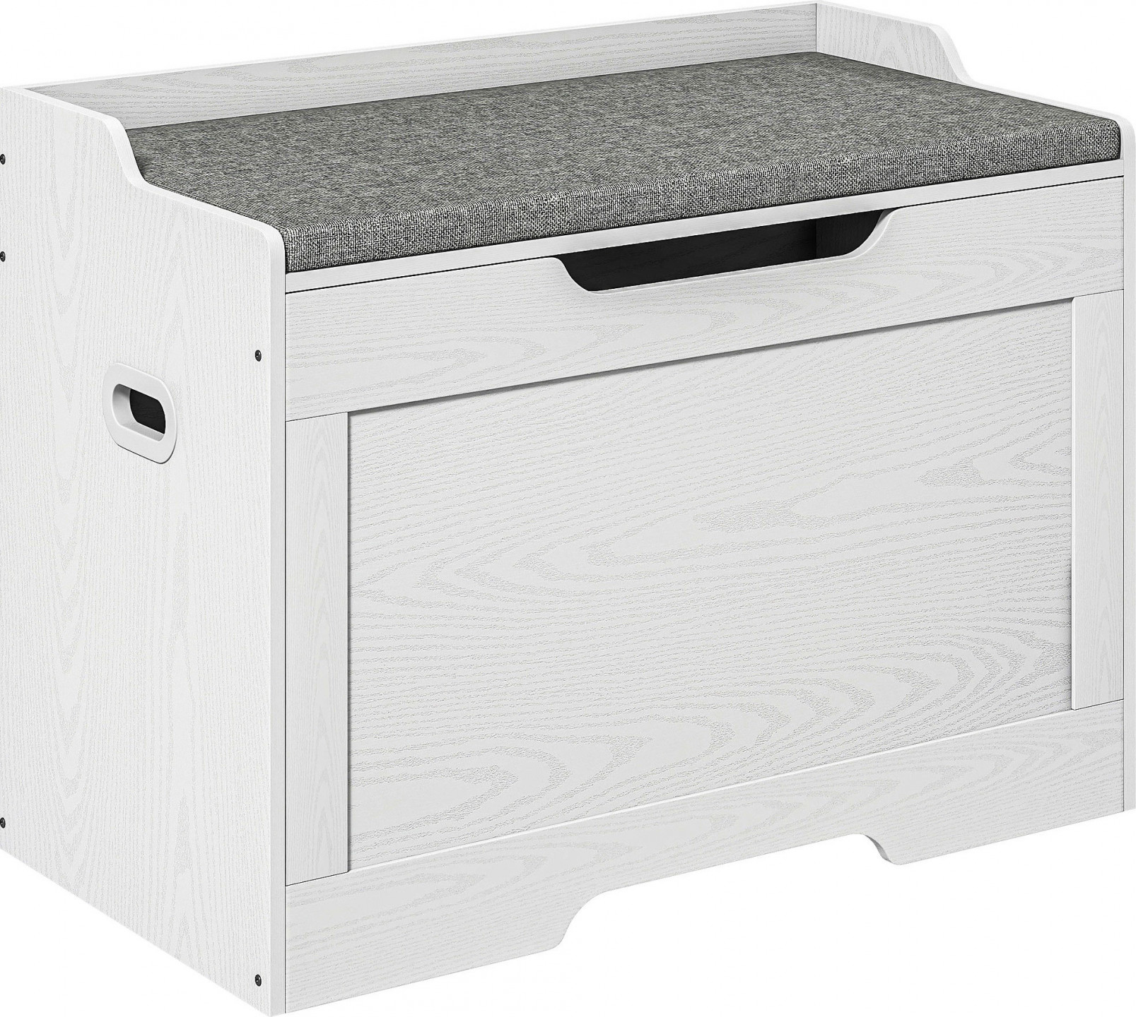 Zažijte multifunkční eleganci s úložnou komodou! Lavice truhly nabízí 103 litrů úložného prostoru a bezpečnostní závěs chránící prsty při zavírání. Lze ji také použít jako útulné sedátko na lavici. V bílé barvě a s šedým polštářem je tato úložná truhla stylovým doplňkem každé místnosti.