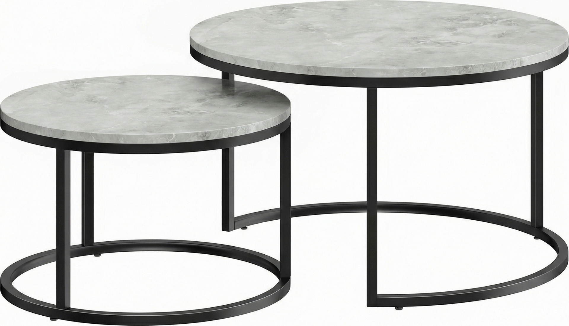 Tato sada konferenčních stolků zaujme ve vaší domácnosti, ať už je rozložená, nebo složená dohromady. Skládá se ze dvou stolků, které do sebe zapadají a šetří tak místo. Kovový rám stolku zajišťuje stabilitu, zatímco povrchy s cementovým vzhledem si dlouhodobě zachovávají svůj styl a krásu.