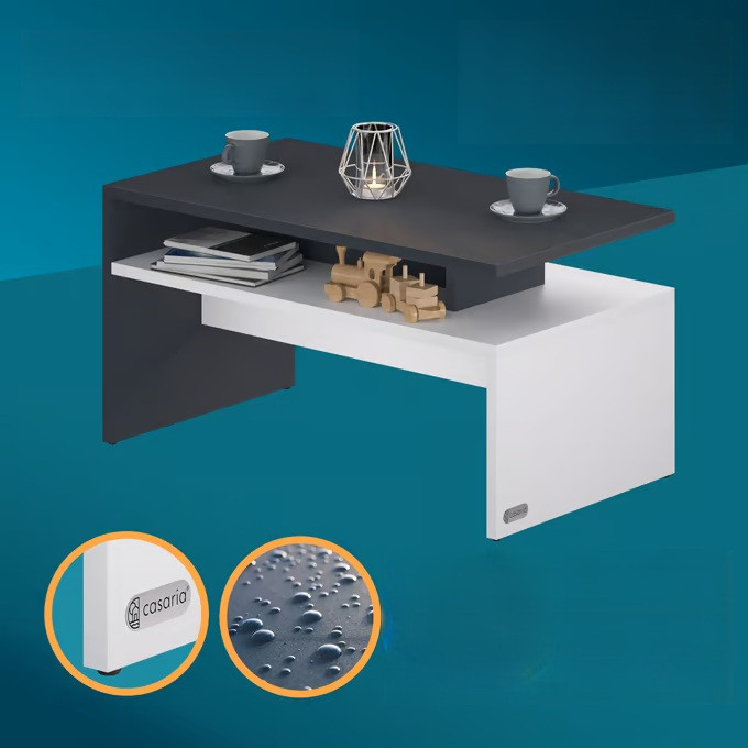 Stylový konferenční stolek Sacramento v moderním kombinovaném provedení bílá/antracitová přináší elegantní design a praktický úložný prostor. Kompaktní rozměry 95×55×50 cm se hodí do každého obývacího pokoje.
