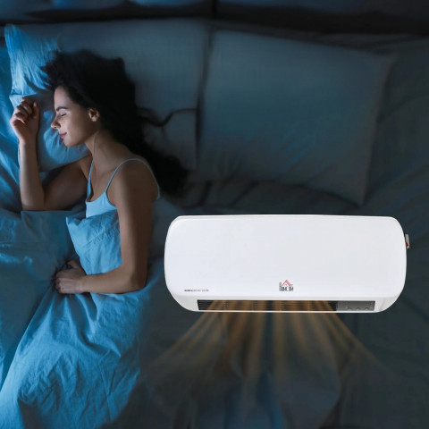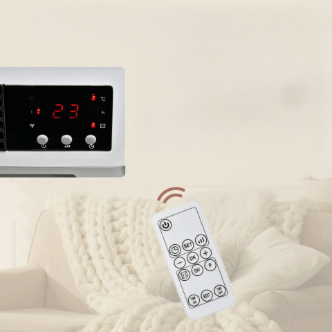 Tento výkonný nástěnný ohřívač s ventilátorem je navržen a vyroben s pokročilými keramickými topnými tělesy, která zajišťují rychlejší a energeticky účinnější ohřev než běžné elektrické ohřívače. Je kompaktní a výkonný a představuje ideální přídavné topení do ložnice, koupelny nebo kanceláře. Dálkové ovládání umožňuje pohodlné ovládání na dálku.
