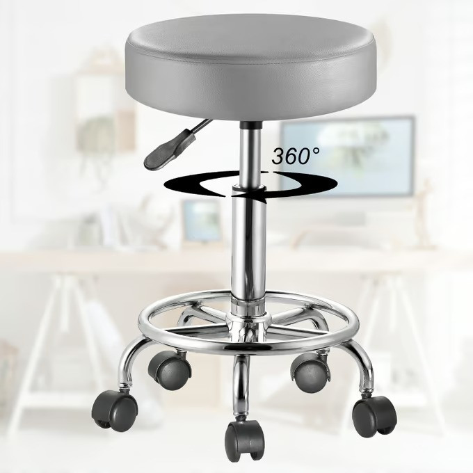 Otočná židle nabízí vysoké pohodlí při sezení a spoustu flexibility . Pracovní židle je plynule výškově nastavitelná a volně se otáčí o 360°. Má také chromovanou ocelovou základnu s pěti kolečky pro optimální stabilitu.Nožní kroužek z chromované oceli poskytuje pohodlnou oporu pro nohy .10 cm silný sedák a plynové pružinové odpružení zajišťují optimální pohodlí při sezení. Potah sedáku je vyroben z odolné syntetické kůže, která se snadno udržuje.