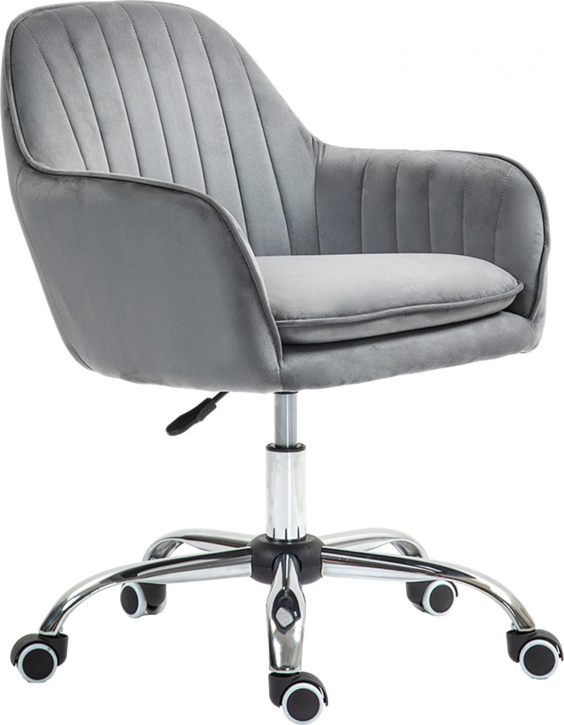 Zažijte každodenní eleganci s otočnou židlí se sametovým potahem a kolečky. Kancelářská židle nabízí maximální pohodlí díky pěnové výplni a čalouněnému sedáku. Vysoký opěrák a područky podporují správné držení těla. Kancelářská židle je nastavitelná v rozmezí 84-97 cm a dokonale se přizpůsobí výšce vašeho pracovního stolu. Díky pěti hladce se pohybujícím kolečkům ji lze bez námahy přemisťovat.