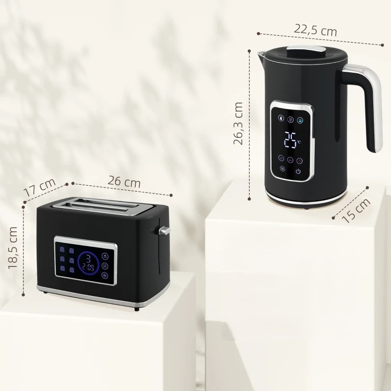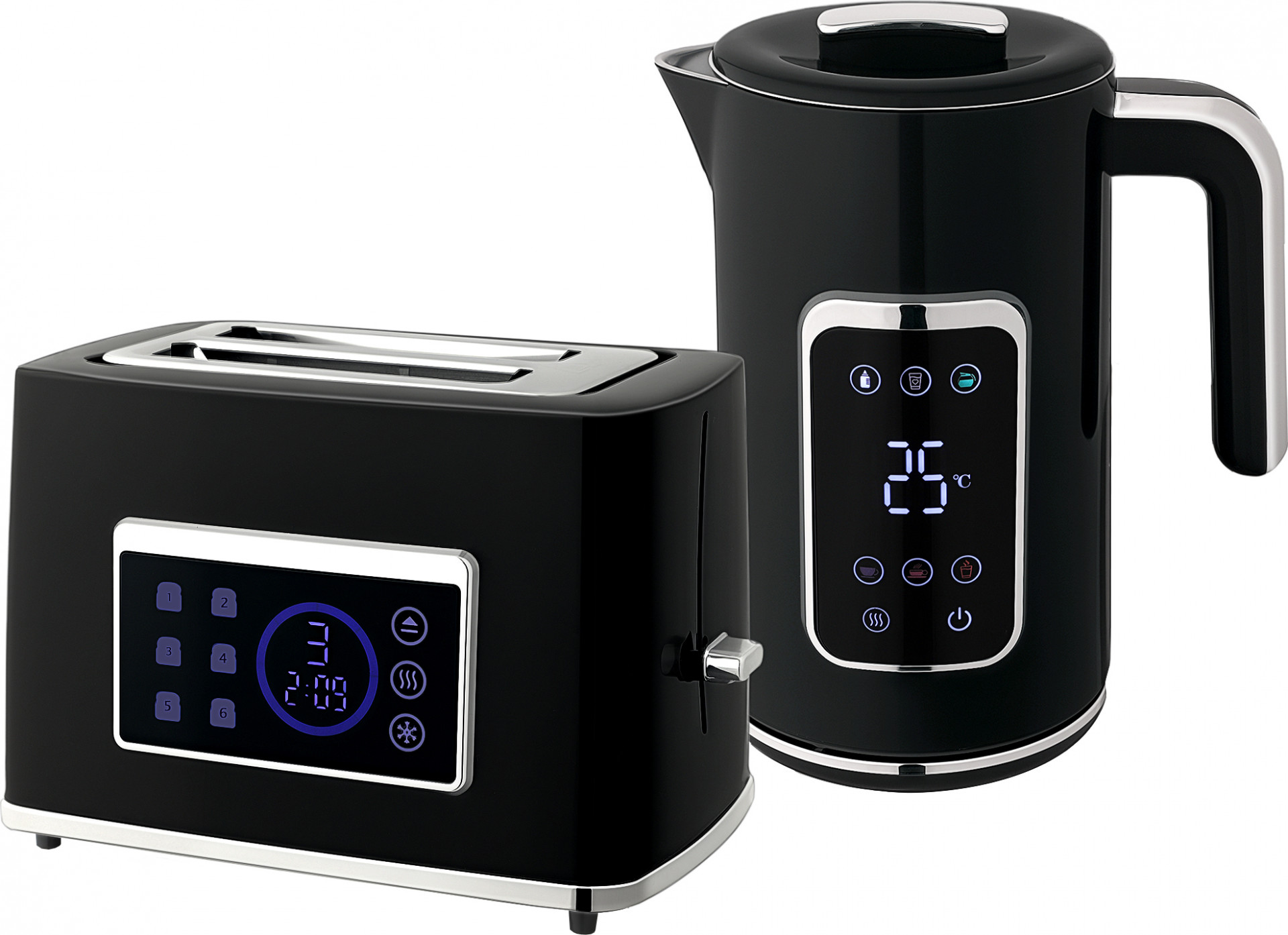 Konvice s příkonem 2200 W rychle uvaří až 1,7 litru vody a nabízí šest nastavení teploty pro přípravu čaje nebo kávy pomocí dotykového ovládání. Funkce udržování tepla udrží teplo až 3 hodiny. Odpovídající topinkovač nabízí široké otvory, šest stupňů propečení a funkce rozmrazování, ohřívání a zrušení, aby bylo opékání vždy dokonalé.