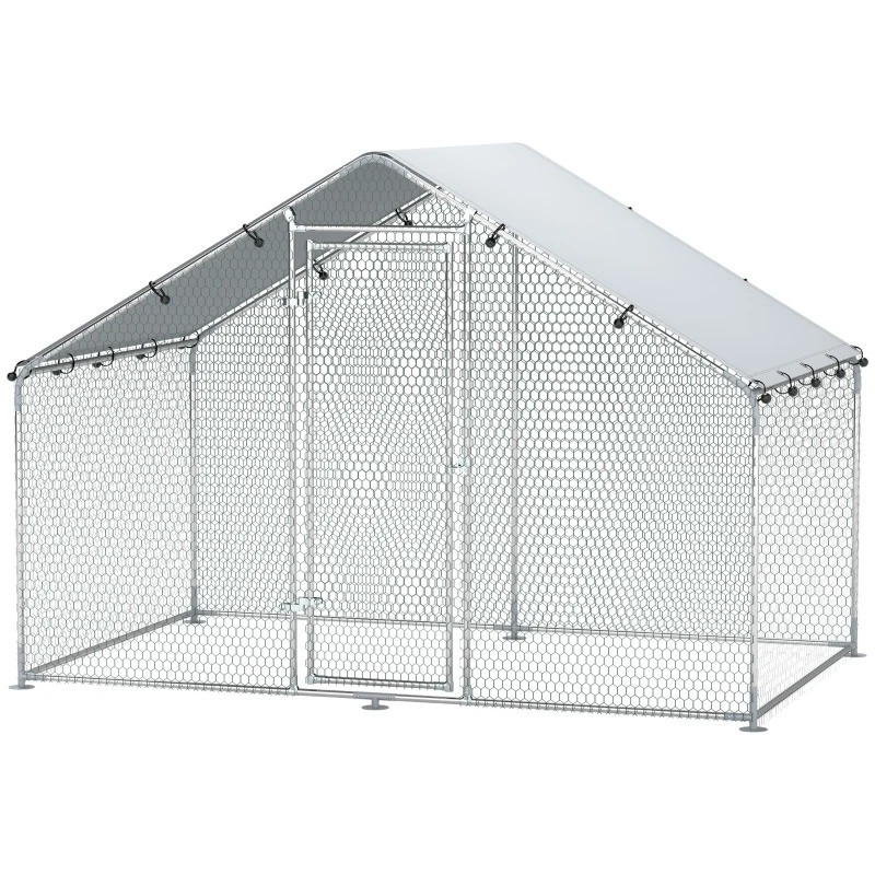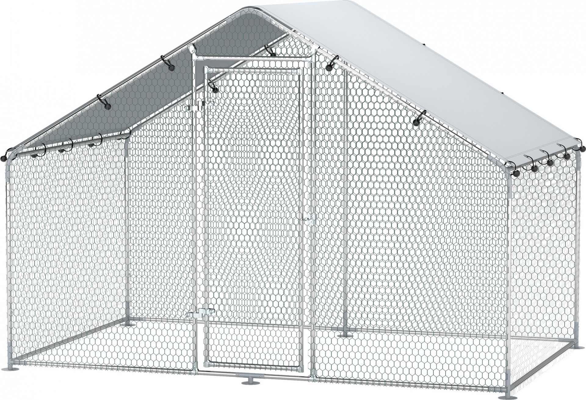 Ocelový kurník se střechou, 3 x 1,7 x 1,9 m | stříbrný