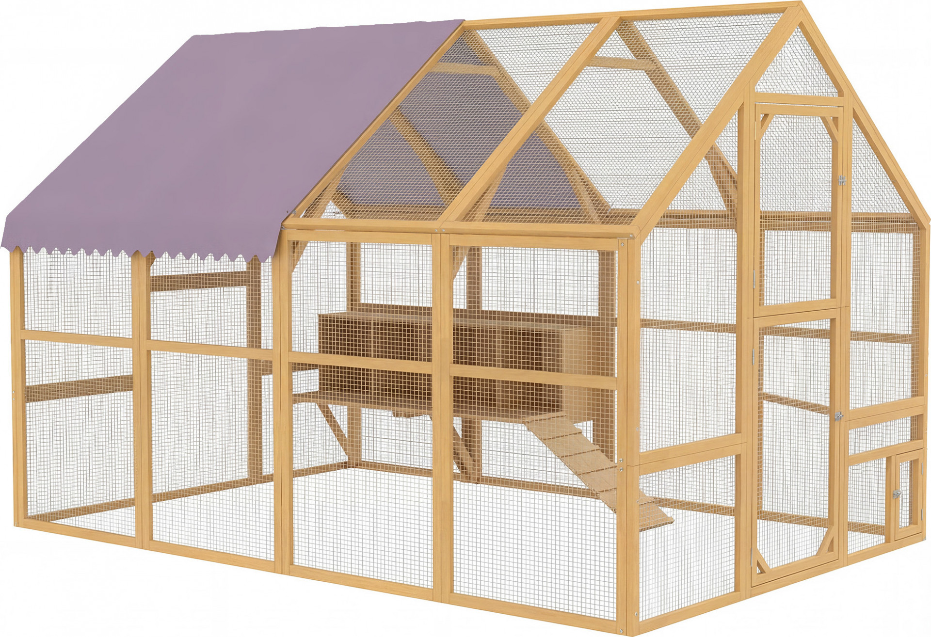 - Díky vysoké konstrukci venkovního výběhu mohou majitelé snadno vstupovat a opouštět krmnou plochu