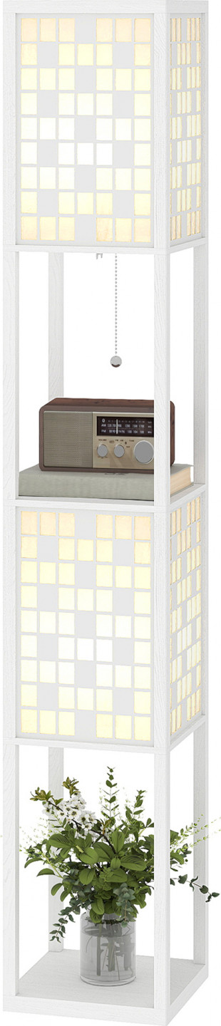 Rozsviťte svůj pokoj stylově! Elegantní stojací lampa s půvabným stínidlem s mřížkovým vzorem vykouzlí okouzlující světelné efekty. Využijte praktické dvojité police pro více úložného prostoru nebo dekorace. Snadno se ovládá pomocí vestavěného nožního spínače a samostatné tahové šňůry pro horní světlo. Ideální do místností, které chtějí mít hřejivou záři.