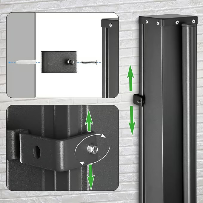 Vysoce kvalitní boční markýza Nosara poskytuje optimální ochranu před zvědavými pohledy. Robustní kazeta markýzy je vyrobena z práškově lakované oceli a obsahuje neprůhlednou markýzovou látku z odolného polyesteru (180 g/m²). PU povlak činí látku vodoodpudivou, odolnou vůči povětrnostním vlivům a snadno se čistí . Spolehlivě také blokuje poryvy větru a slunečního záření.Látka se plynule odvíjí až do délky 3 m . Extra velká pružina je dlouhá 1 m a umožňuje markýzu odvíjet bez záhybů , protože napětí se při roztažení rozloží na větší plochu.Pro markýzu existují dvě možnosti instalace . Sloupek markýzy můžete buď trvale připevnit k zemi, nebo použít patku sloupku. Ta se připevní k zemi a boční sloupek se jednoduše zasune. To je obzvláště praktické, pokud je třeba markýzu například sundat pro zimní uskladnění .Markýza má nastavitelný nástěnný úchyt, díky čemuž je všestranná pro širokou škálu typů balkonů a teras a dodá vašemu domovu osobitý prvek .Model má na rukojeti funkci aretace , takže markýza je bezpečně ukotvena i za větrných podmínek.