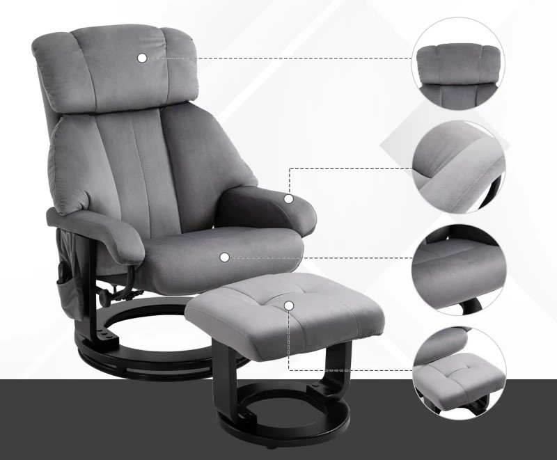 S MASÁŽÍ PRO DOBRÝ POCIT: Celkem 10 vibračních masážních bodů zajišťuje všestrannou relaxační masáž. Je jich 6 v opěradle, 2 v sedáku a 2 v taburetce. Pomocí přiloženého dálkového ovladače můžete snadno ovládat různé masážní režimy.