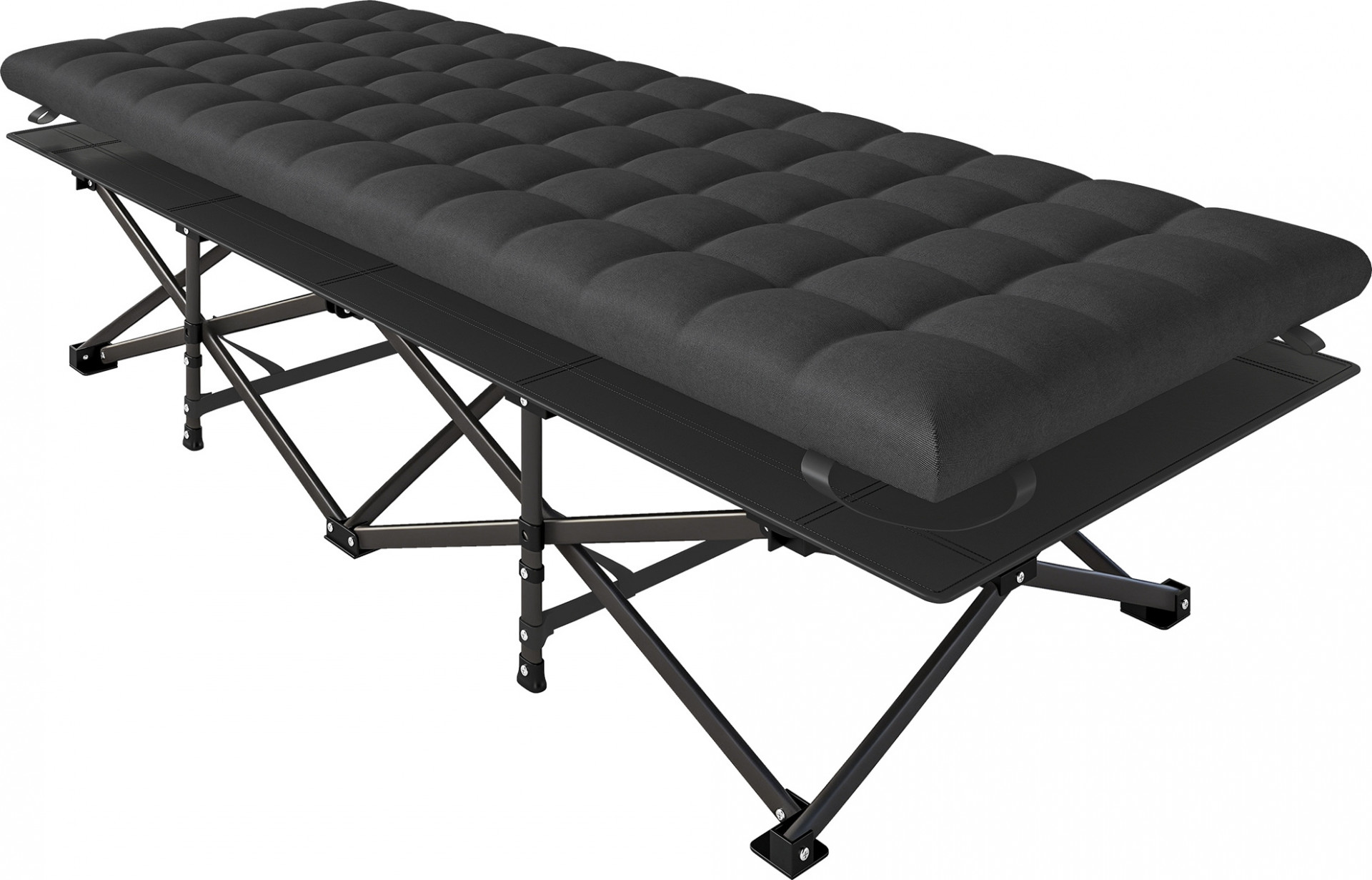 Proměňte svůj spánek v přírodě s kempinkovou postelí! Odnímatelná, 3 cm silná vrstva polstrování poskytuje teplo za chladných nocí, zatímco prodyšná tkanina Oxford vám v létě zajistí pohodlí. Extra velký rám nabízí dostatek prostoru pro větší táborníky a robustní konstrukce unese až 200 kg. Všestranný společník pro každé dobrodružství!