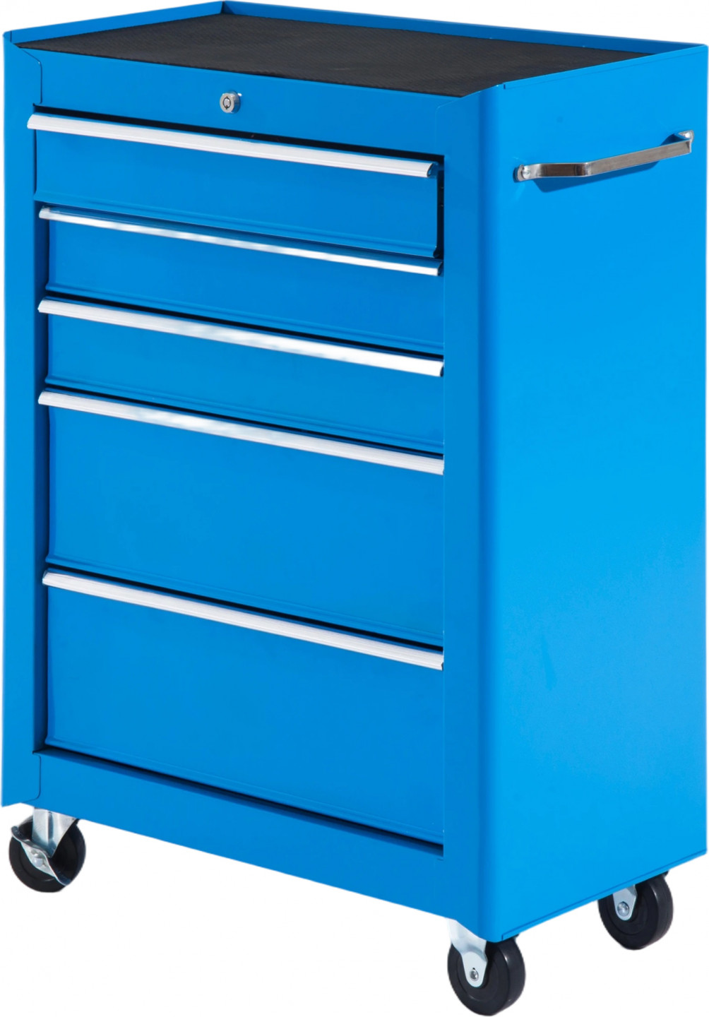 Objevte tento dílenský vozík pro bezpečné uložení vašeho profesionálního vybavení. Má pětiúrovňovou konstrukci a tři malé a dvě velké zásuvky, které poskytují dostatek prostoru pro uspořádání vašeho nářadí. V každé zásuvce je umístěna podložka EVA, která zajišťuje absorpci přebytečného oleje a tekutin a prodlužuje tak životnost vozíku na nářadí. Je vybaven čtyřmi kolečky a bočním madlem, takže se s ním manévruje bez námahy.