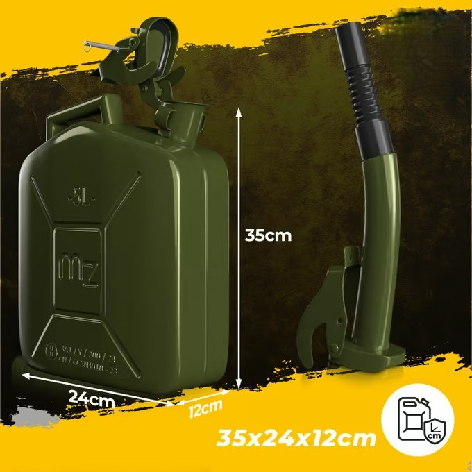 Náš kovový kanystr na benzín má schválení OSN pro přepravu nebezpečného zboží a je vhodný pro všechny druhy paliva (benzín, naftu, olej atd.).