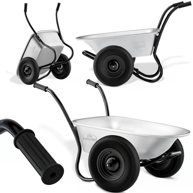 Váš nepostradatelný zahradní pomocník.Robustní trakař s pozinkovanou vanou nabízí vysokou nosnost a díky vzduchovým pneumatikám se snadno přemisťuje i s těžkými náklady. Dvě pneumatiky zajišťují větší stabilitu a snadnou manévrovatelnost i v nerovném terénu. Kolečko je vybaveno pohodlnými gumovými rukojeťmi a robustním ocelovým rámem.